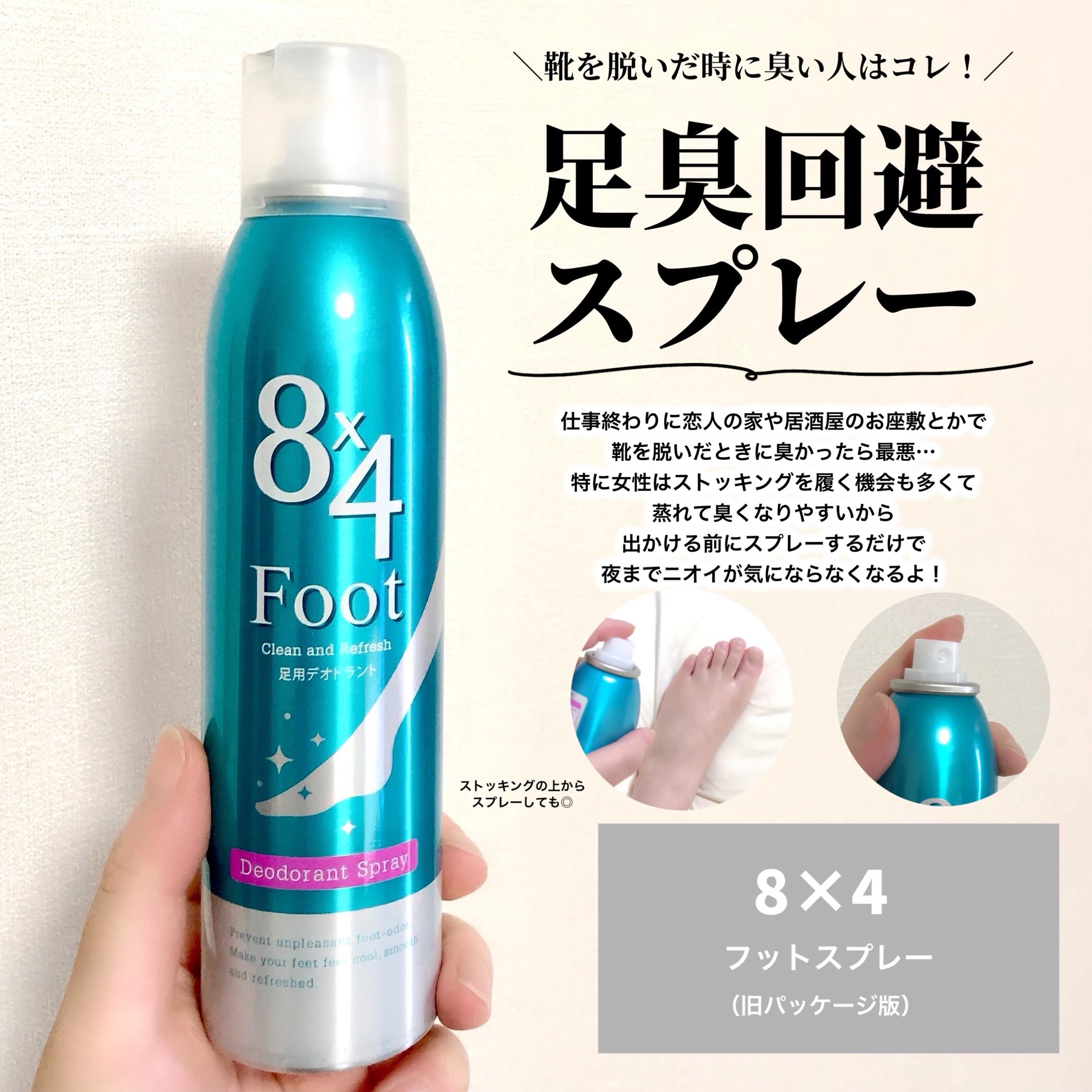 出かける前にシュッと8x4のフットスプレー/ストッキングとかスニーカーとかを履いてると大変なことになるので買ってみました!スプレーだから急いでいても一瞬で使えるので、便利です✨ストッキングの上からでも使えるので、さっぱりしたいときやスプレーを忘れたときなど、いつでも使用できます☺️ニオイも抑えられ、安心して1日を過ごすことができるようになりました!#目指せ毛穴レス肌