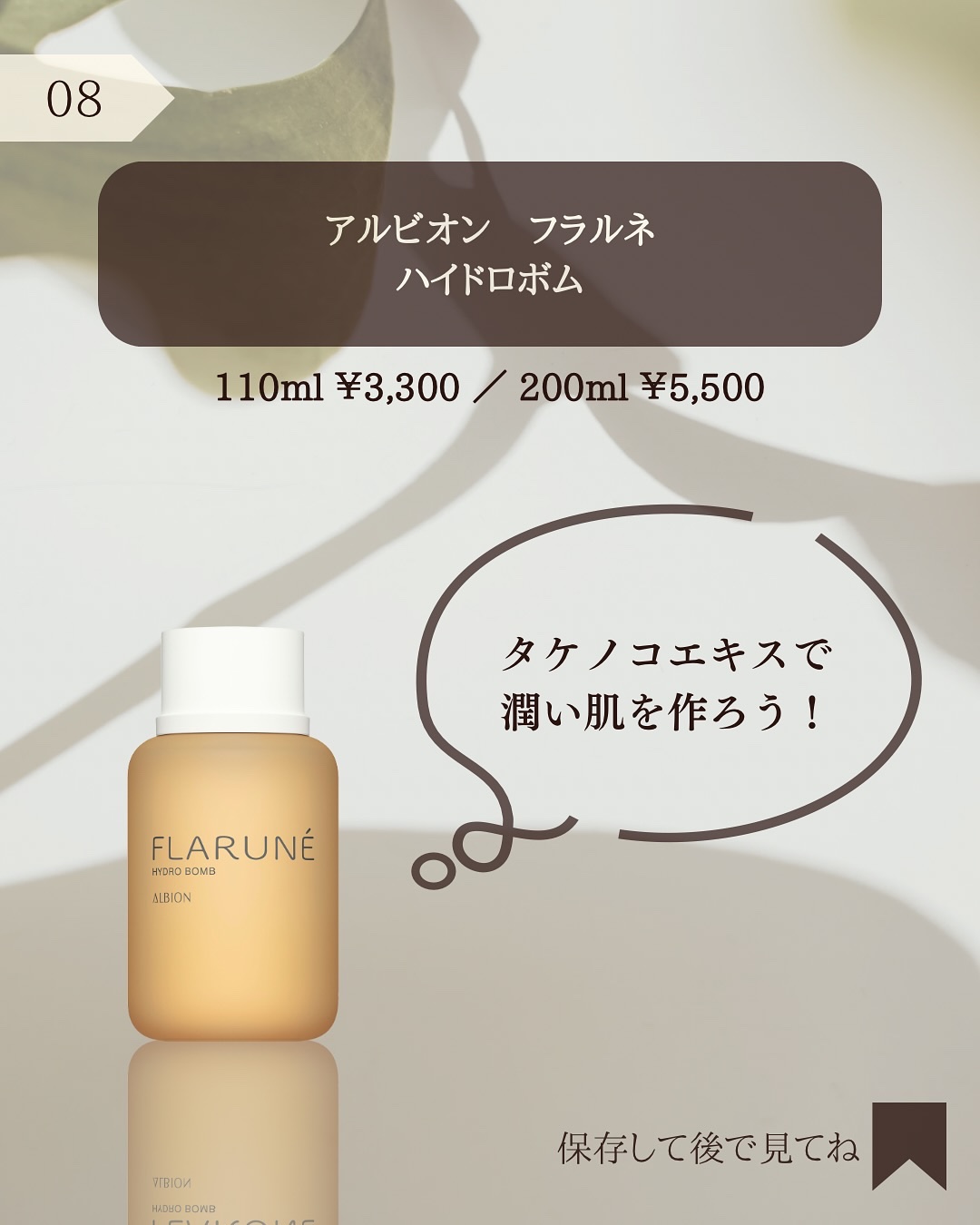 @hana.skincare._👈素肌をキレイにする混合肌スキンケア「たけのこエキスで潤い爆弾!」\はじけるような弾むお肌に!/✓季節の変わり目で乾燥がひどい方に!✓乾燥によってくすみも気になる方に!🌿商品詳細アルビオン フラルネハイドロボム110ml¥3,300/200ml¥5,500📌おすすめポイント✓たけのこから取れる自然由来の成分でヒタヒタに潤う!✓水のようなサラサラなテクスチャー!✓エッジの効いた透明感のある香り!@albion_flarune====================================ハナ|素肌をキレイにする混合肌スキンケア🌿\ツヤ肌目指す・美肌ケア💎/◆美容に目覚めて12年目のスキンケアマニア◆テカリ&乾燥 悩みの多い混合肌さん向け◆ドラコスメイン/コスパ◎のスキンケア紹介《成分・効果を徹底解説》◆自分に合ったスキンケア選びができるようになる🌿====================================@hana.skincare._👈いいね・フォロー・保存・コメント・DMなど、とっても励みになります!😳✨#混合肌#混合肌スキンケア#混合肌向け#混合肌ケア#混合肌用#混合肌対策#スキンケア#スキンケアマニア#スキンケア用品#スキンケア紹介#スキンケア好き#スキンケアオタク#スキンケア難民#スキンケアレポ#スキンケアレビュー#スキンケア商品#プチプラスキンケア#プチプラスキンケア購入品#プチプラスキンケア用品#ドラコス購入品#ドラコススキンケア#素肌ケア#素肌感#素肌美人になりたい#フラルネ#フラルネ_はじめルネ#フラルネスキンケアシリーズ#フラルネハイドロボム#たけのこエキス#ハイドロボム