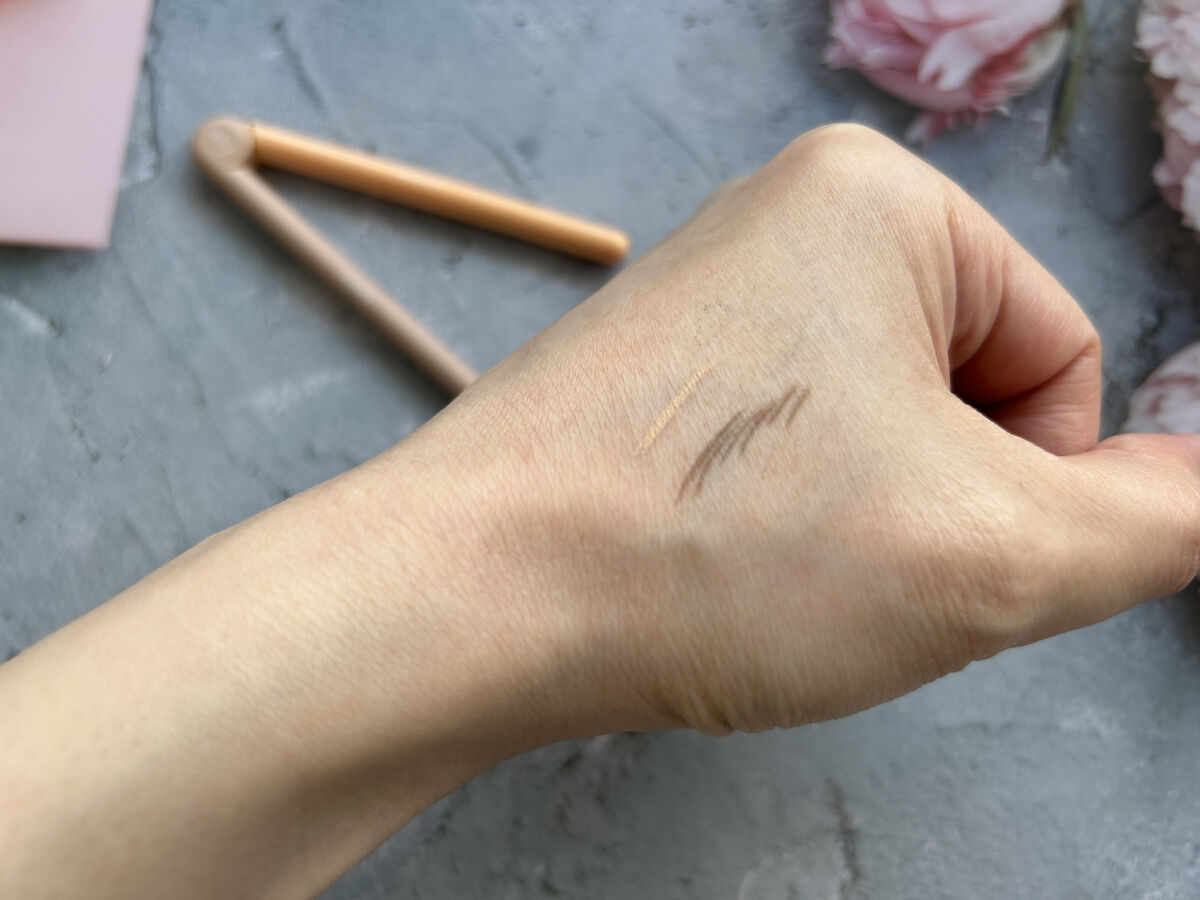 眉メイクは絶対コンシーラーも使った方が美しさがアップするし、 1本になっていると両方使う めんどくささも軽減されます🐰✨ アイブロウは02のダークブラウン。 明るすぎず暗すぎず、このブラウン だけで眉全体を描いても不自然に 濃い感じにならなくてふんわりした 質感の眉毛が描けます💡 描き心地はかなりなめらかで 芯が細いので細かい部分や とがらせたい眉尻も思い通りに 描くことができます。