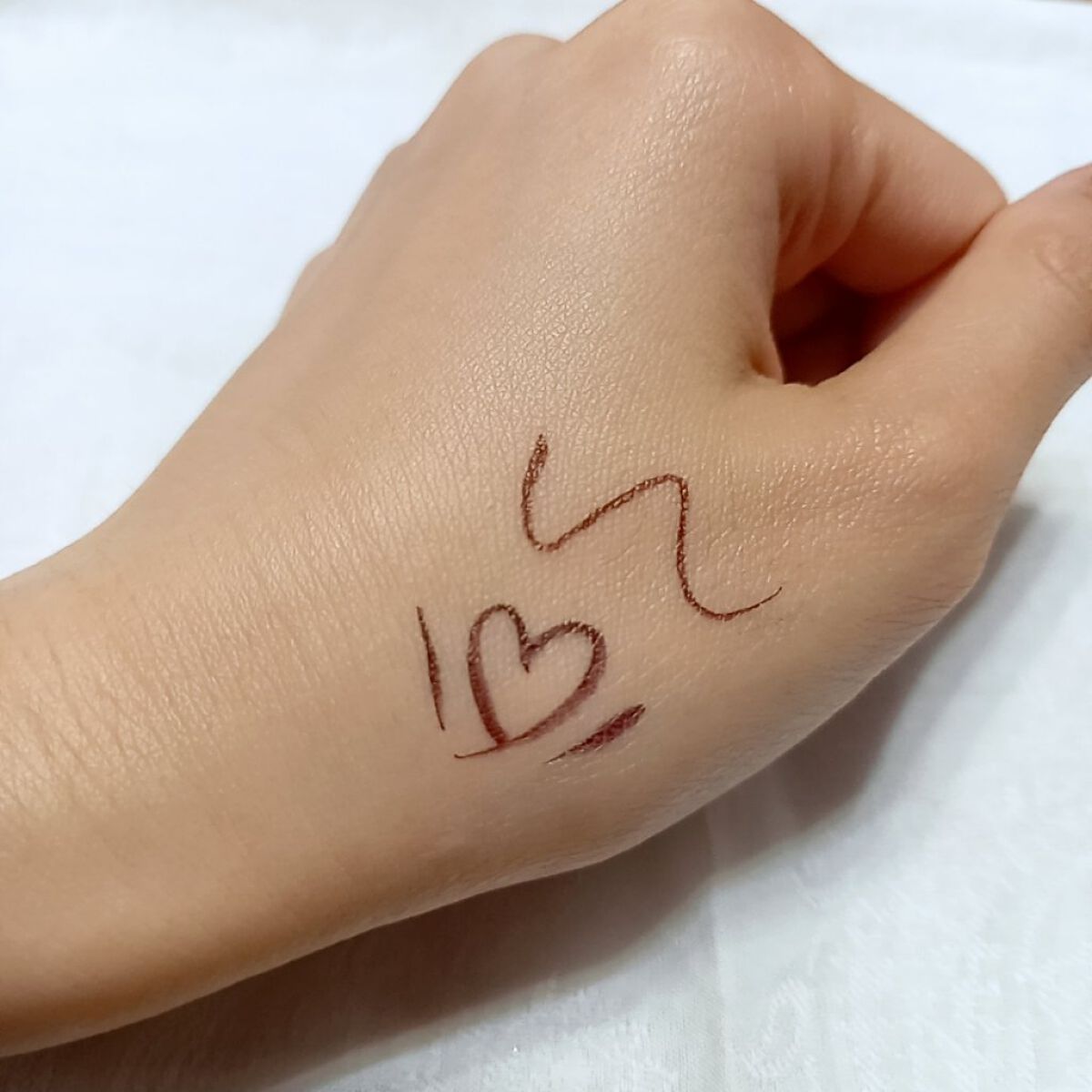 大人っぽい上品さもありながら愛らしいピンクとなっています🎀 抜け色なので普段のメイクのアクセントにも◎ ピンク系メイクやブラウン系メイクに使いやすい色味になっています💭 パープル寄りの色味なので赤みのパープル系メイクでも可愛いかと思います 極細筆なので描きやすくまた目元に使うぶんにはにじみはあまり気になりませんでした✍ 発色ははっきりというよりはほんのりで重ねるとはっきりとしてくる印象です またウォータープルーフ×スマッジプルーフのWプルーフで汗や水でもにじみにくい💫 ある程度の擦れにも耐久できそうです(思いきり擦ると落ちますが完全に消えるわけではありませんでした😌) タレ目だと甘い印象にも流すと色っぽ目元にもできちゃうので普段とメイクを変えたい方におすすめです♡/