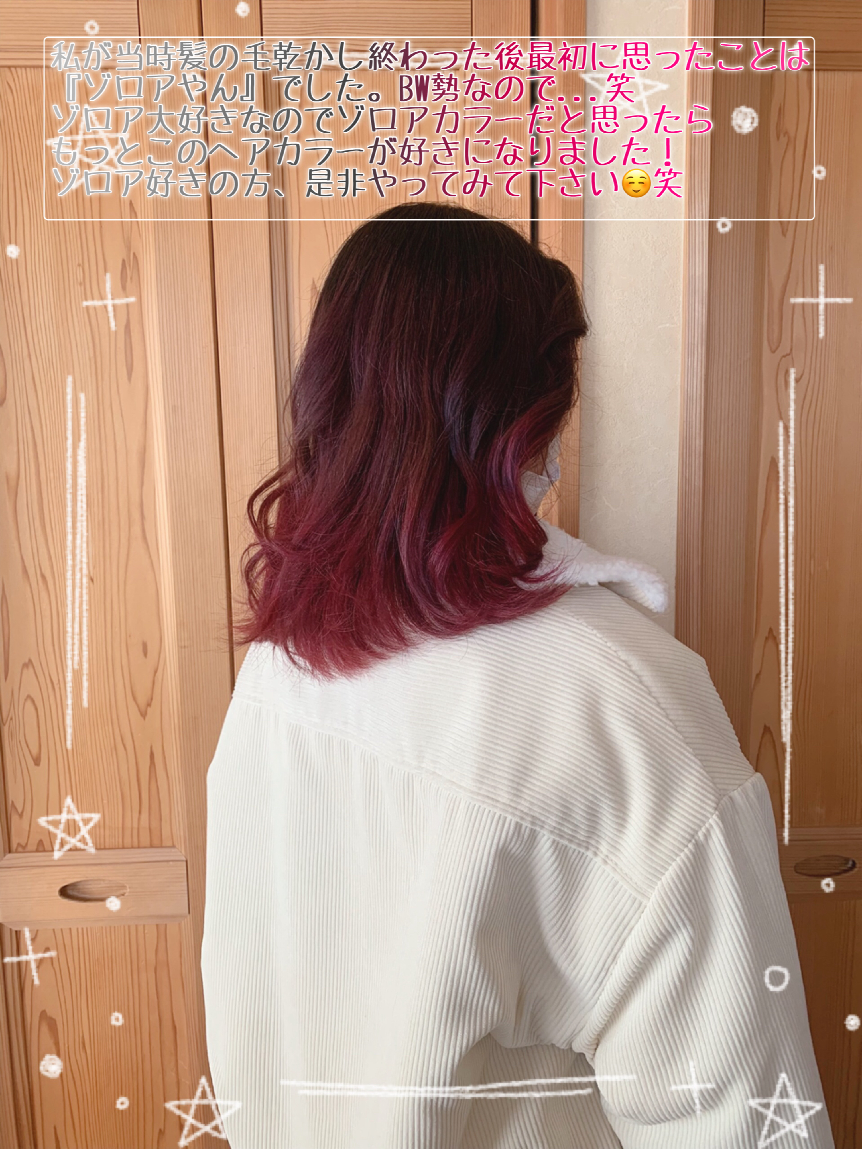 セルフでゾロアカラー🖤❤️こんにちは!PINOです🐣今回はエンシェールズを使ってセルフで髪を染めたのでご紹介します!※2年ほど前に染めていたので正直覚えていないところもあるのですが、覚えている範囲で書きますので是非参考にして下さい!これは20...
