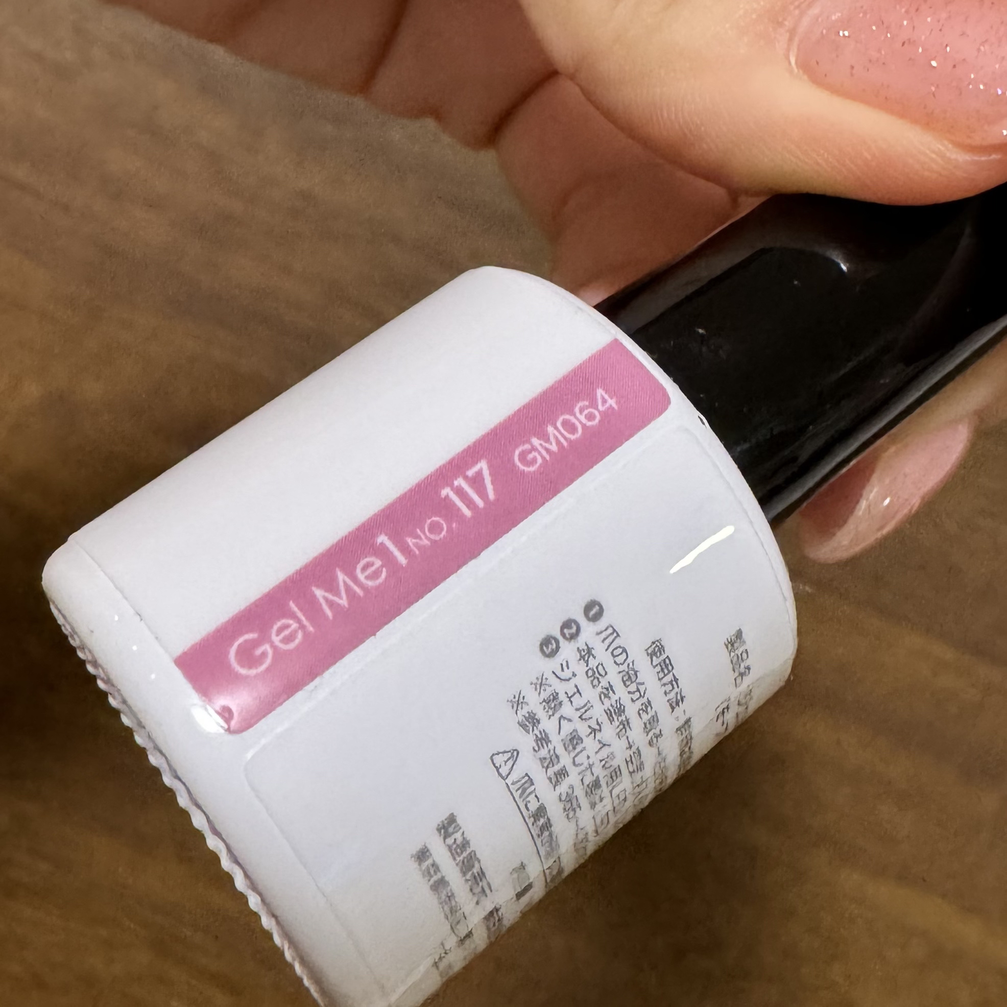 117は、モーヴピンクのベースにピンクラメが入った、大人かわいいカラー💖 光が当たるとピンクラメがキラキラするのがかわいいの😖 個人的には二度塗りがかわいいと思いました✌🏻 ジェルネイルカラーとしてのクオリティが良かったので、他の色も集めようと思います🙌🏻