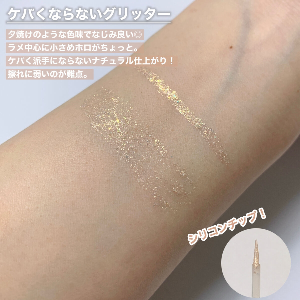 色味が多くて嬉しい( ∩ˇωˇ∩)♡ 発色はとても優しめで、濃いめの発色が好きな私にとっては少しもの足りなかったです🥲 付けてるんかわからんくらいの色もあった ラメはしっかりキラキラするタイプでつけすぎ注意です 個人的に⑤のラメがめちゃくちゃ可愛かった! ナチュラルメイクが好きな人や、すっぴん風に見せたい時に使うのがおすすめです🍃