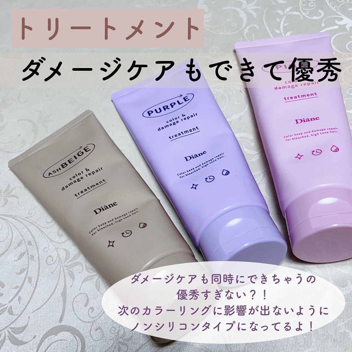 𝐷𝑖𝑎𝑛𝑒𝑐𝑜𝑙𝑜𝑟𝑑𝑎𝑚𝑎𝑔𝑒𝑟𝑒𝑝𝑎𝑖𝑟普段はブリーチを重ねた髪にその時の髪色の持ちに合わせてアッシュシャンプーやピンクシャンプーをもう1年近く使用している髪ですꪔ̤̫ꪔ̤̱ꪔ̤̮ꪔ̤̥今回試したのはヘアケアブランドDianeカラーシャ...