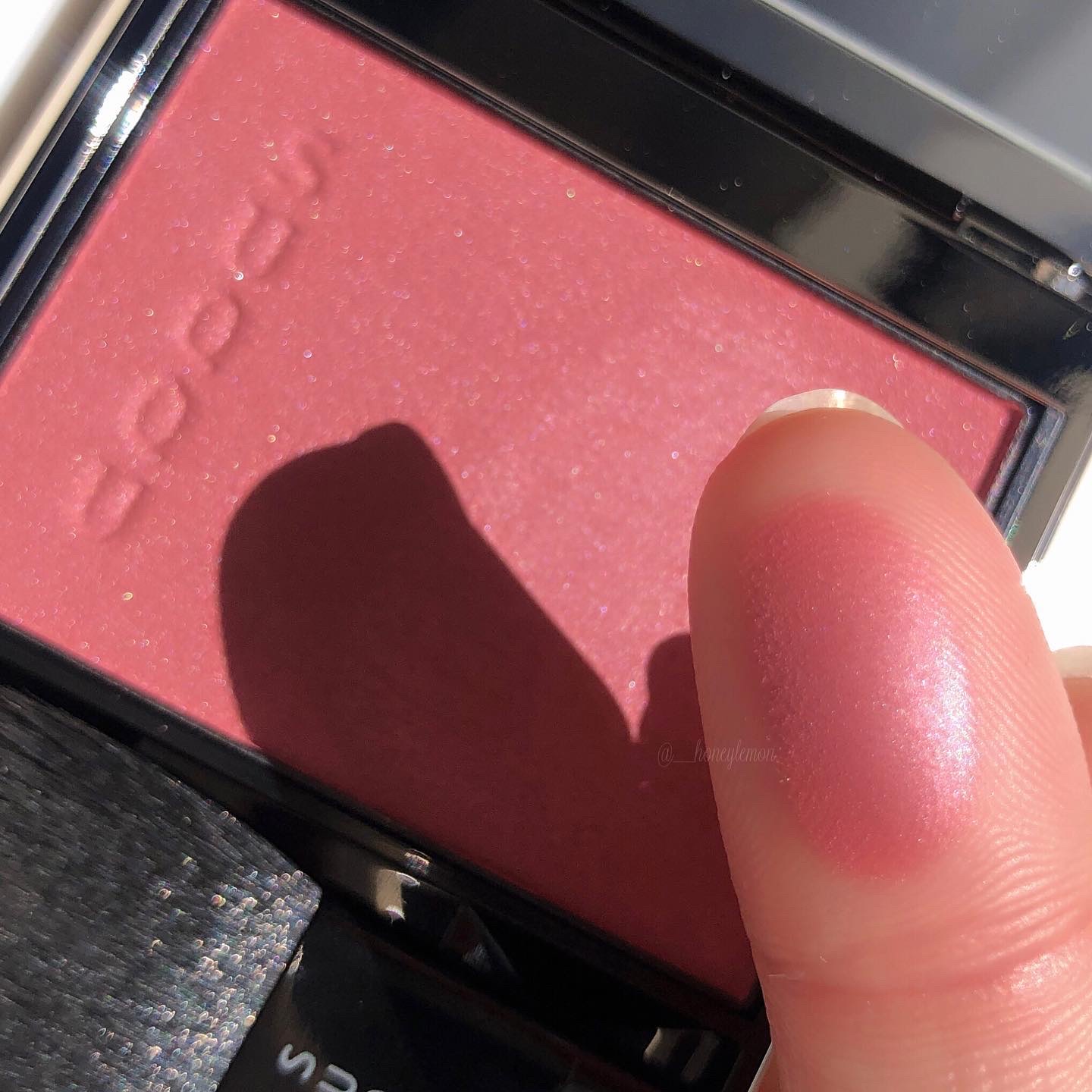新技術「メルティングパウダー処方」の採用により、これまでは難しかったオイルの高配合や、新たな原料構成による新フォーミュラのチークを実現。 パウダーでありながら、大人の肌に自然になじむ“新湿感”で、じんわり艶をにじませ、透明度を感じる頬に。 肌に乗せるとすっっと溶け込むのにびっくりしました…!パウダーチークの粉っぽさが何もない… このカラーは色出やすいので肌に乗せる前に調整すると更に良さそうでした◎ 久々のチーク購入だった記憶ですが、アイシャドウと同様ついつい手が伸びるお気に入りになりました! この色はまだ公式オンラインとかでも売ってるみたいなので気になる方いたら是非…!!
