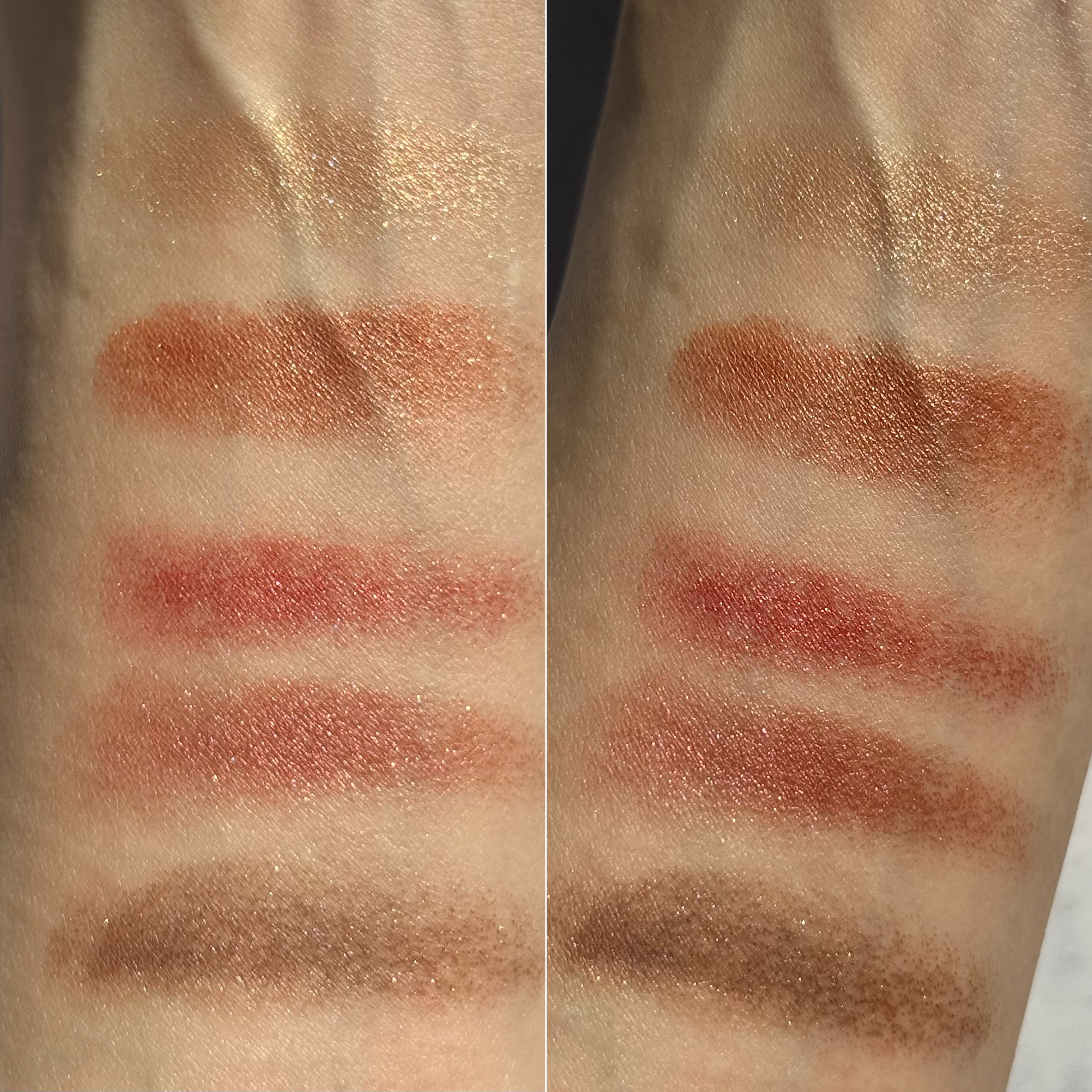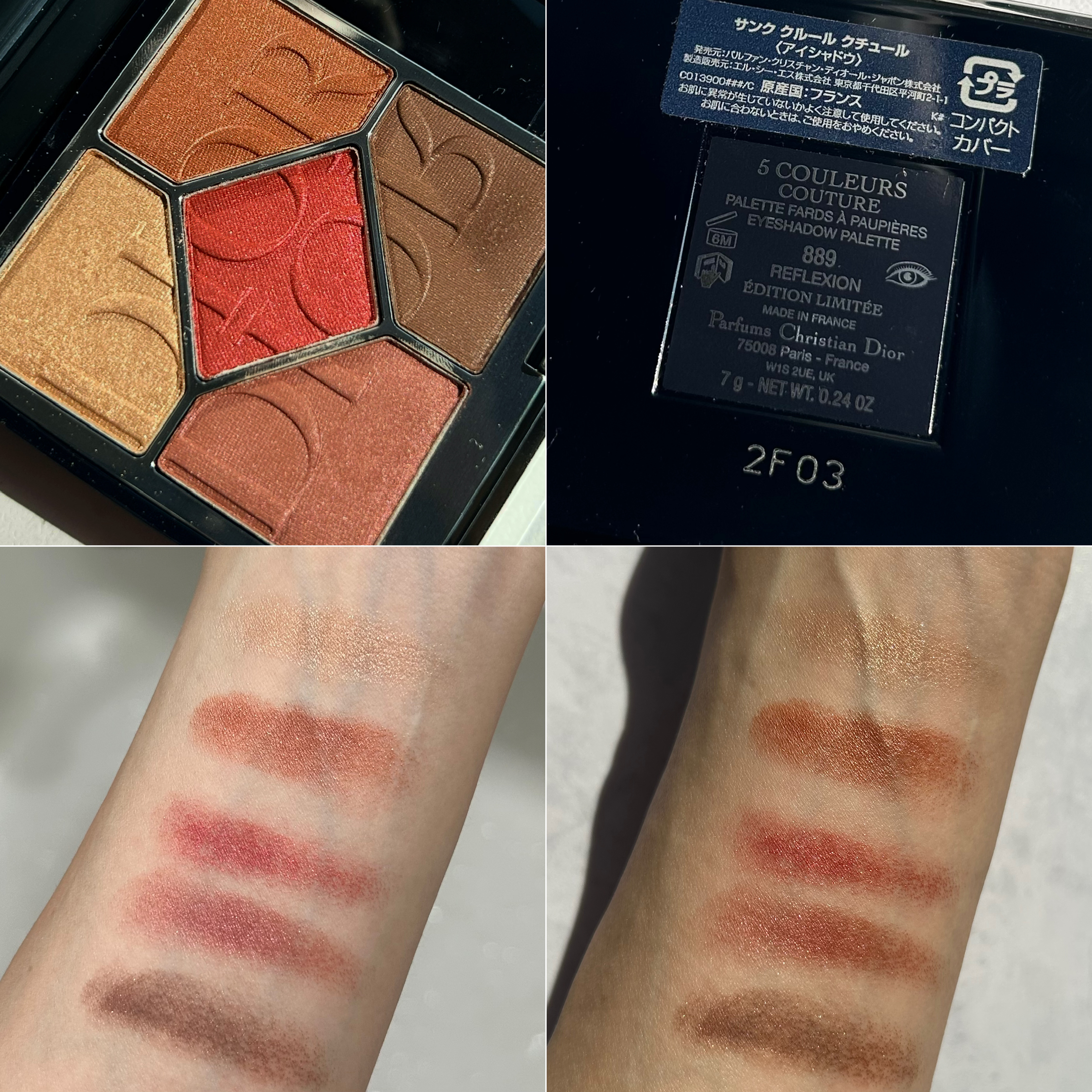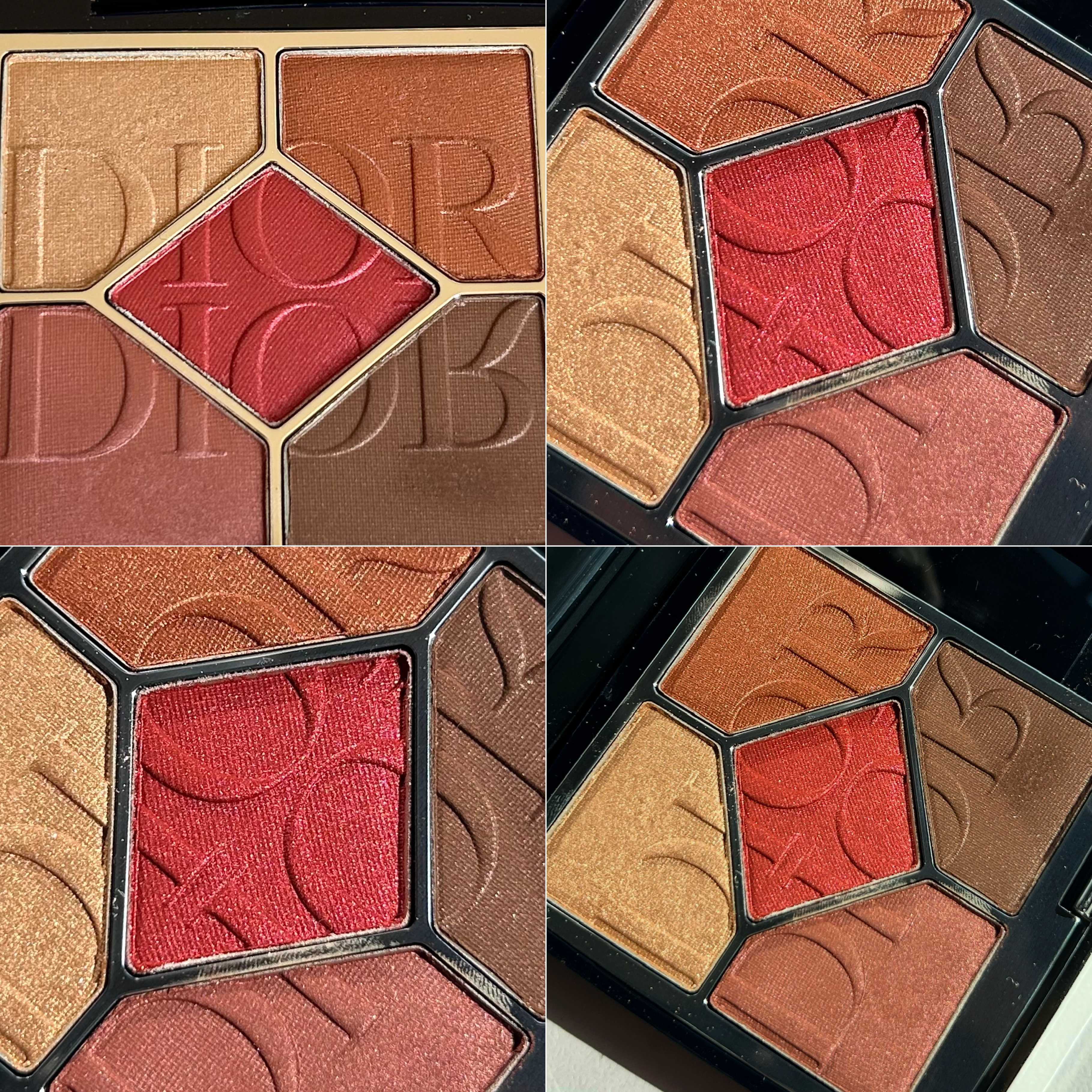 中央のカラーは濃密なブロンズレッドだそうで、これがキーカラーかな♡ 他のカラーは中央の赤に比べると普段から使いやすそうな色ばかり!私は左下のカラーが結構お気に入りです。 テクスチャーはしっとり!ただ見た目より優しめな発色に感じました。重ねたら濃くはなりますが。 Diorのロゴのデザインも美しい♪限定ってほんとそれぞれに特徴があって、やっぱり集めたくなっちゃいます✶∗*゚