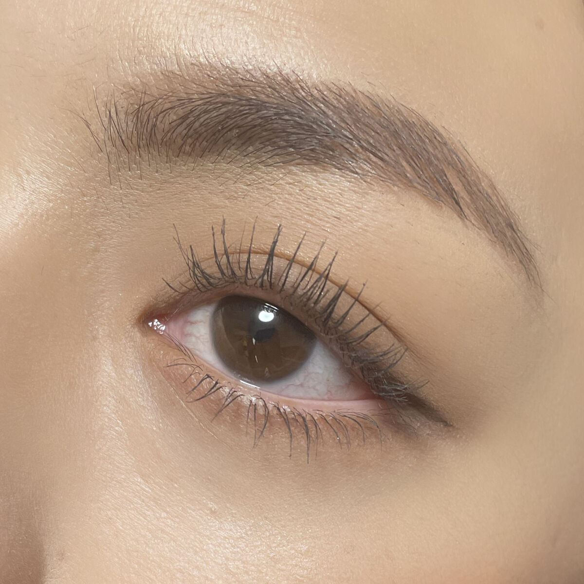 上瞼は上段の真ん中2色を混ぜて乗せて、そのまま下瞼にも。 下目尻には下段の濃い赤色をプラス。 アイライナーはミルクブラウンで主張はしすぎず、全体的にまろやかなマットなアイメイクに。
