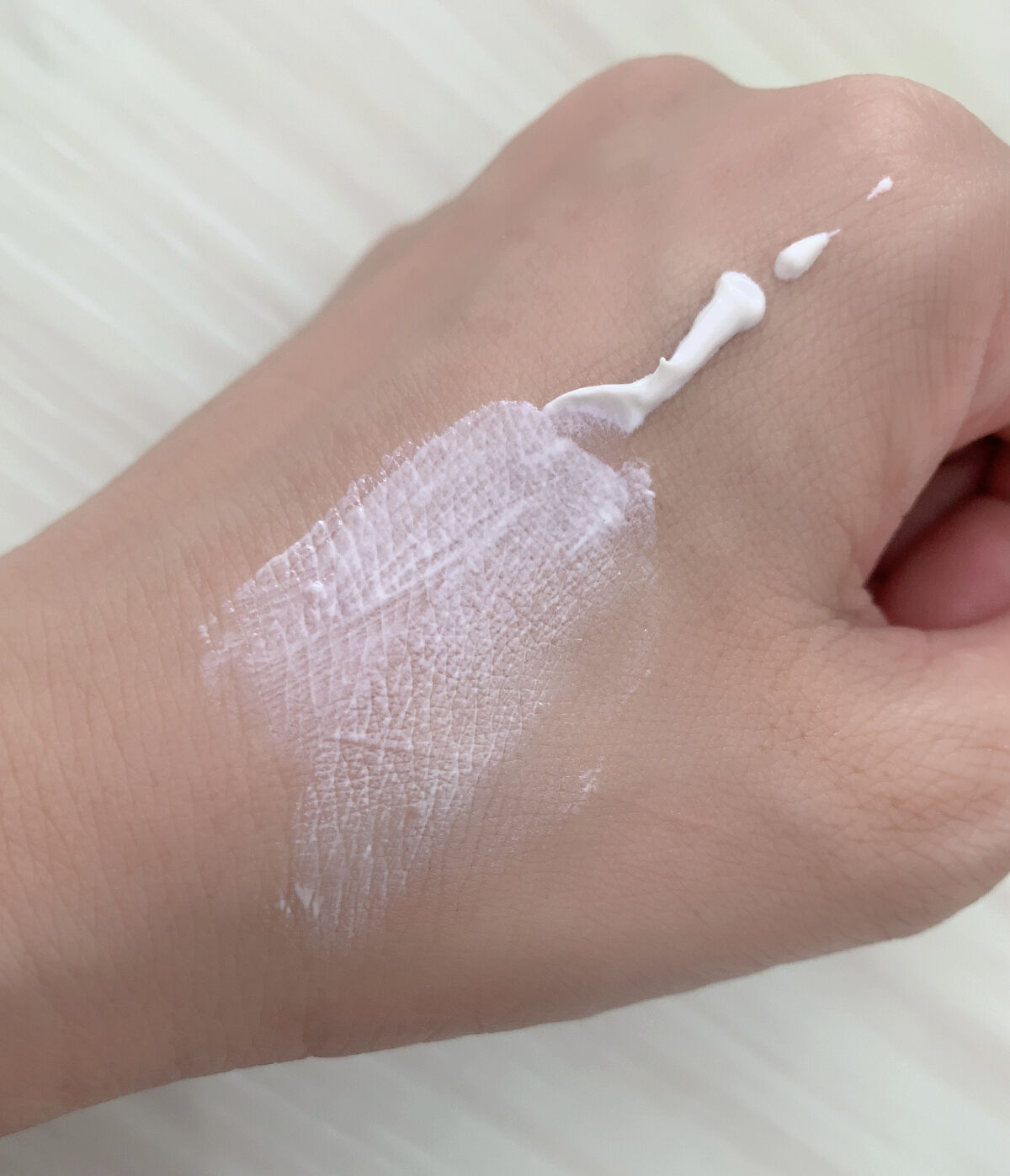 細かいラメ入り。 スウォッチでも分かるようにあまりパープル感が少ないです😅 3色あったけど、私のお肌でほんのりトーンアップするのは、このパープルが1番使いやすそうでした🥰 イエベで色黒気味なのでホワイト過ぎると浮きますが、これならと思い購入したけど目の下の三角ゾーンに塗ったらクマが青っぽく見えるようになってしまった気が🤔💦 ファンデの上ではなく、トーンアップクリームの上にハイライトっぽくして塗ってからフェイスパウダーをしました。 私はファンデ上よりもファンデの下の方が合ってそうです💦 普段のトーンアップクリームの時はCゾーンや鼻筋・アゴ先のみの使用の方が合ってそうでした☺️✨ これからの乾燥する季節には、ベースメイクが完成した上からハイライトとして塗れば乾燥予防にもなりそうです☺️ パウダーと違ってツヤっとしてくれそう✨