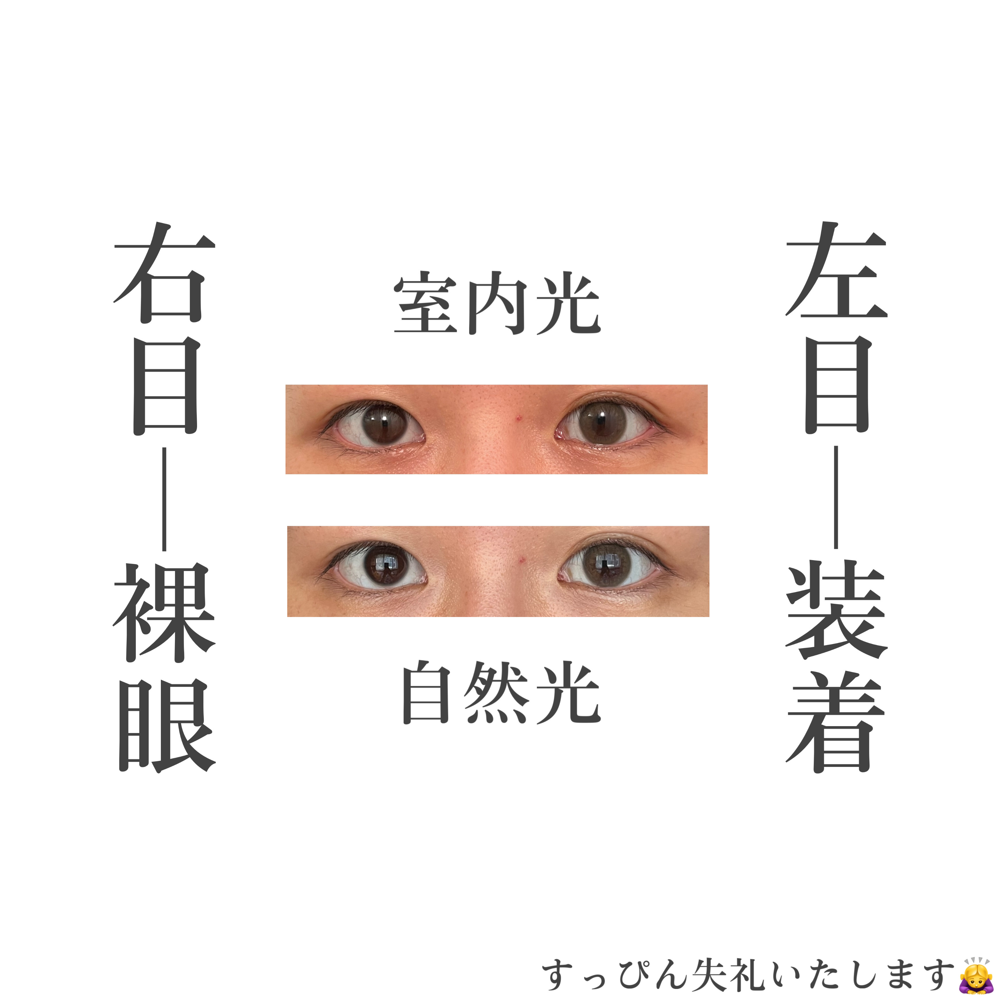 色味は瞳と馴染んでよかったのですが、少し印象がぼんやりするような……好みの問題だと思いますが、もう少し縁があってもよかったかなーもちろんかわいいはかわいい!ナチュラルに瞳を明るく見せたいときとかいいかも