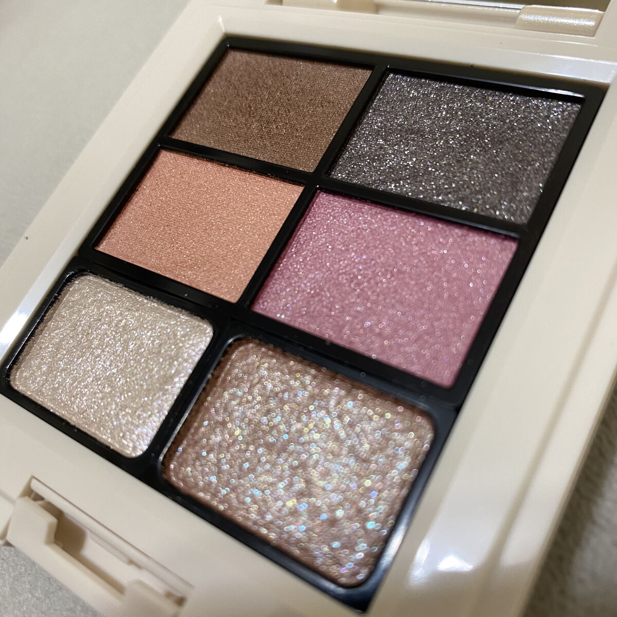 洗練された愛らしさと純粋さのあふれるシャイニーピンクパレット💕 肌なじみよく乾燥しにくいテクスチャーと、高密着長時間キープで色味もくすみにくい🌿 A.Bはどちらも肌なじみよく、冬だけでなくオールシーズン使えそうなナチュラルかわいいお色味。 D.Eは寒色系の色合い。2色でメイクすると透明感ある可憐な可愛さに💕 青みピンクが浮きやすい方にもぜひ使ってみてほしいパレットでした👏🏻 粉質がかなり柔らかく、密着感がいい印象、C.Fが特に柔らかく、指でがっつりとるとくずれてしまい量も多く取れるので優しくポンポンっと触れて瞼に塗布するのがおすすめ😌 パッケージもパレットもパール感が上品で思わずうっとりしてしまうアイテムでした🤍