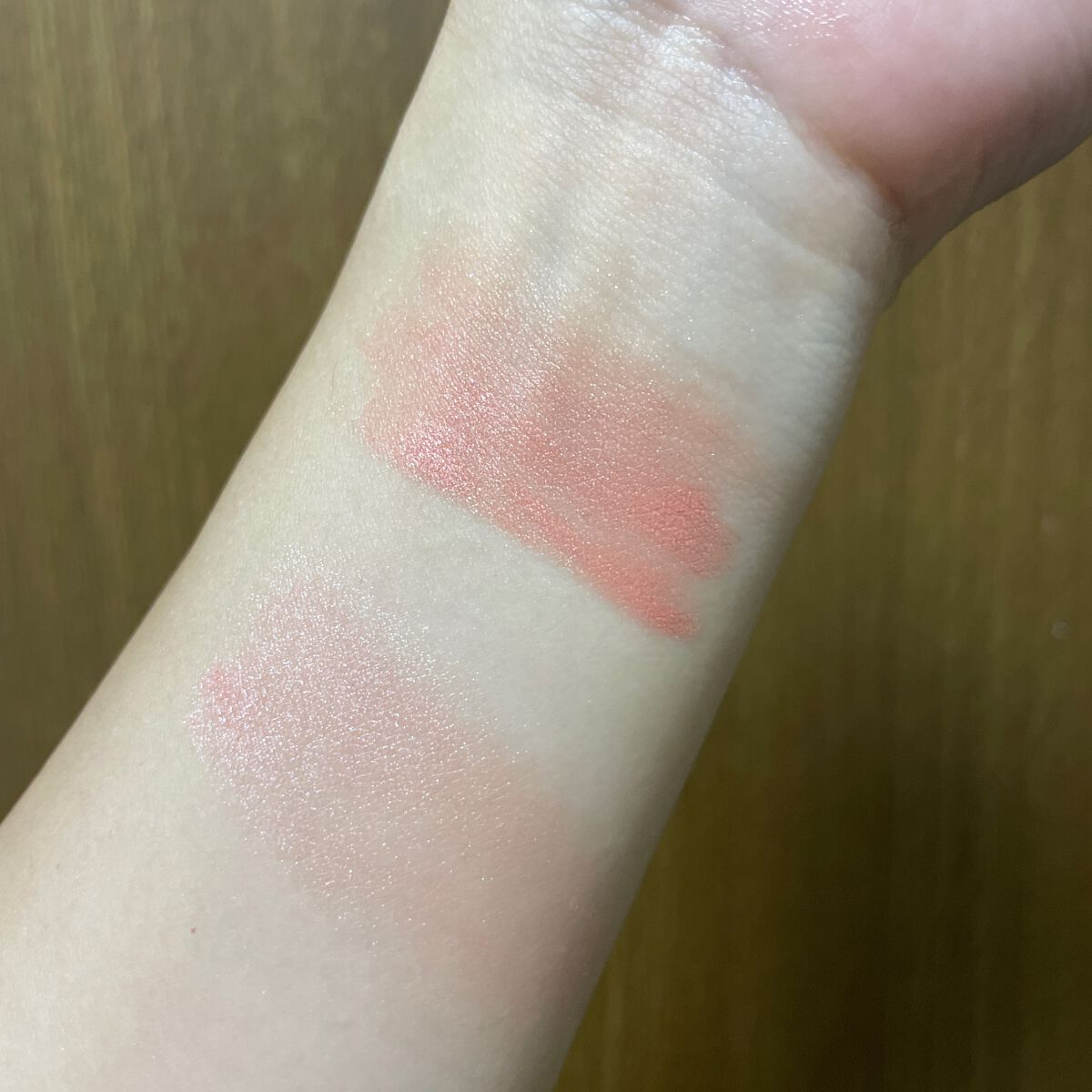 こちら7月20日に数量限定されたフェイスカラーで、当時店頭で一目惚れしました😍😍 つけるとパールのキラキラがとっても可愛いくてグロウな質感が素敵なクリーム状ハイライターです🥰 美容成分配合されてるので時間経っても感想崩れしないのも◎ 血色感を与えてくれてとっても可愛らしい印象になります😄 チークの他にハイライトやアイシャドウベースなどにも活躍する優れものです🫶 ほんとにお気に入りですすぐに一軍コスメになりました🫣 写真でもこれだけパール感が綺麗です✨ 直接見たら感動の綺麗さですよ(〃´o`)!