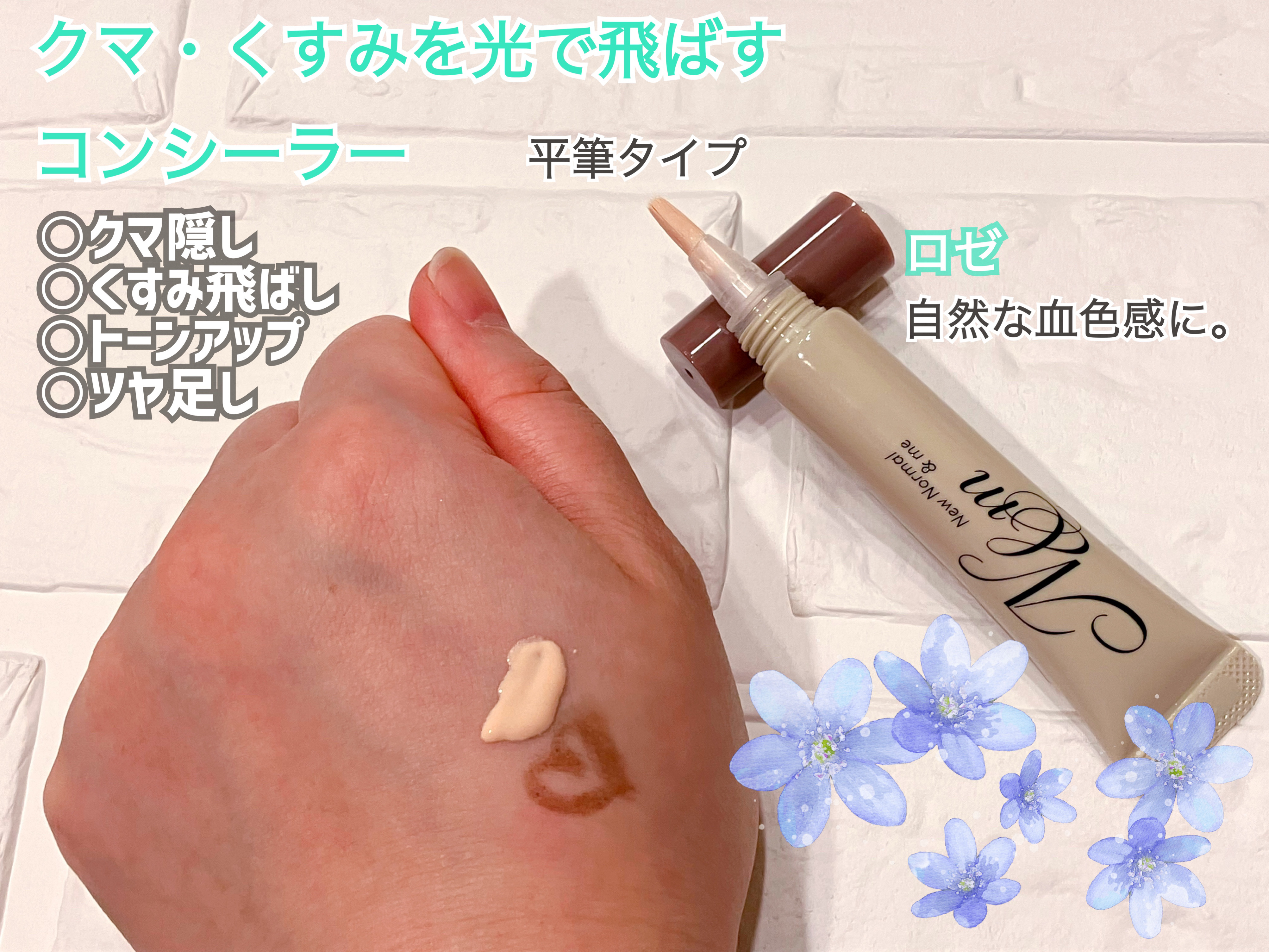 N&m ルミシーラーモイスチャー ロゼクマやくすみを光でとばすコンシーラーこってり系ではなくみずみずしいコンシーラーです◎3種のヒアルロン酸・3種のセラミド・ビタミンC誘導体・レチノール配合で乾燥肌の方でも安心して使えます!メイクしながら保湿ケアできます◎筆タイプのコンシーラーで片手で塗りやすいです!!カバー力はあまりありませんが、光で飛ばしてくれるのでシミなども目立たなくなります!トーンアップ効果もすごいです!!ツヤもすごいのでハイライトとしても使えます◎