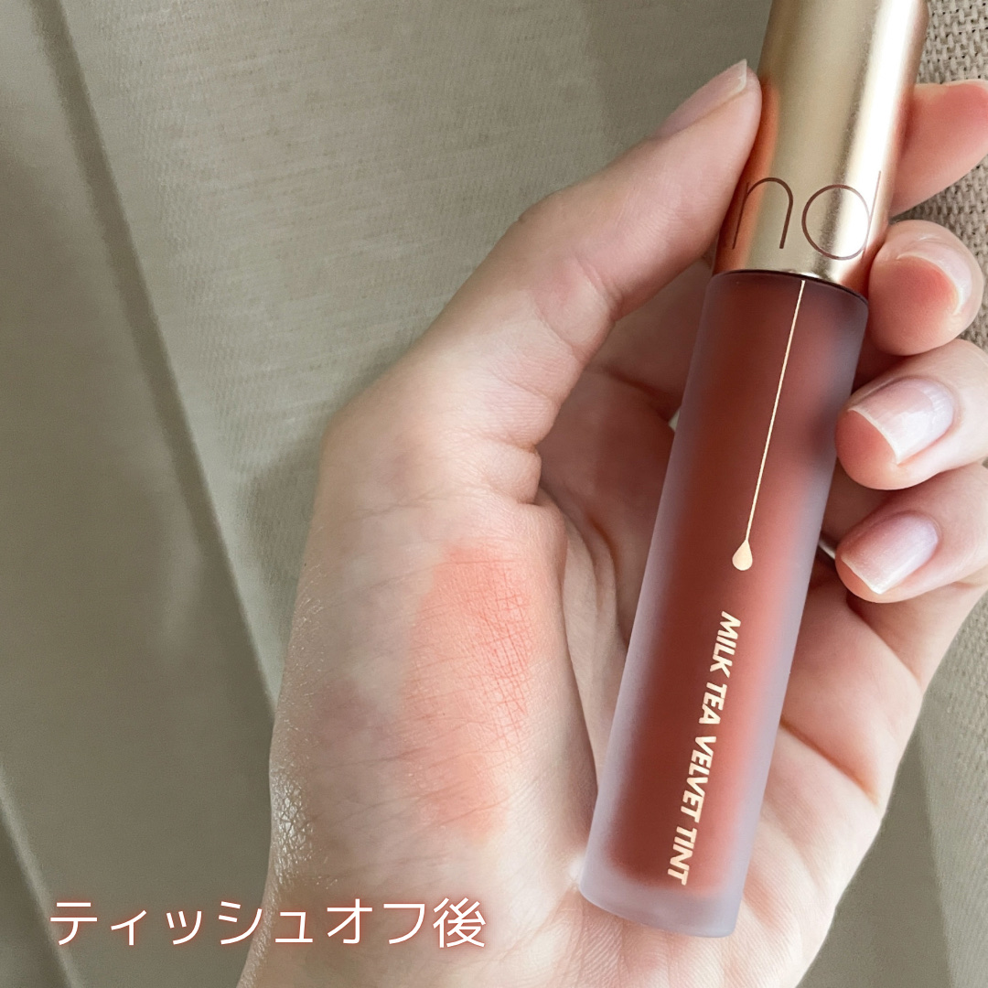 rom&nd ミルクティーベルベットティント 05 バニラティー..こんにちは𝐞𝐦𝐚です💗(◜࿁◝)皆さん、クリスマスはどう過ごしましたか??私はたくさんのプレゼントと、久々に街に出かけることができ最高でした👏🏻.そして今回紹介するのは、 rom&ndの「ミルクティーベルベットティント」です.ᐟ.ᐟクリスマスプレゼントの一部で貰いました~~🤍.まだ勿体なくて唇には塗ってないのですが、今朝肌に試してみると「うわぁ」と声が出るくらい、イエベ秋女の肌にマッチし過ぎて、これはリピ確だなと思いました✌🏻.そして何より、このミルクティーシリーズ、香りがものすごくよくて、この「05 バニラティー」は甘いスイーツのような香りで癒やされました𓂅店舗で他のカラーもにおってみましたが、どれも甘めでいい香りでした💗スイーツ好きにはたまりませんね笑.イエベ秋にも合うのですが、こちらはイエベ春さんにも人気らしいです😳.こちらも前回同様、他のカラーも手に入れたいなと思いました😖参考になったら保存・いいね嬉しいです🤲🏻コメント💭・フォローも是非.ᐟ.ᐟ┊𝘵𝘢𝘨📎#コスメ初心者 #コスメ好き #コスメ大好き#韓国コスメ #韓国コスメ好き #韓国コスメ大好き#自然光 #韓国女子 #コスメ好きと繋がりたい#コスメ初心者と繋がりたい #rom&nd#ミルクティーベルベットティント #リップティント#화장품 #cosmetics