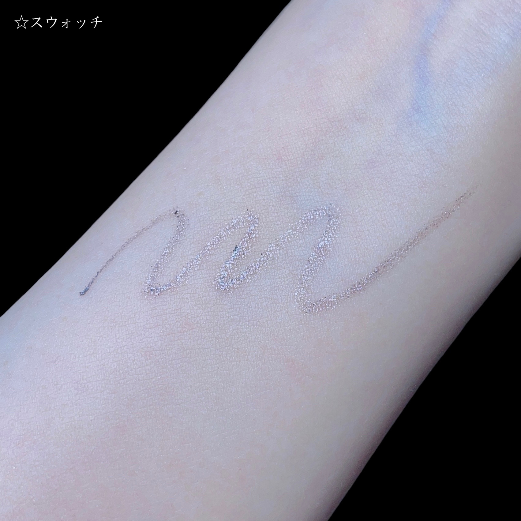 個人的にグレー系のアイライナーが好きでグレージュとかもよく使うのですが、これはベージュ感もなくグレー!好き!!!!!笑 肌にもピタッと密着擦ってもよれない。 ただちょっとパール感(グロウ感?)強いかな?笑キラキラが可愛いんだけどもう少し控えめでも使いやすいかも。 若い子なら全然あり。笑年齢的にもあんまりラメ強いのはしんどいなぁ…と思う(笑)