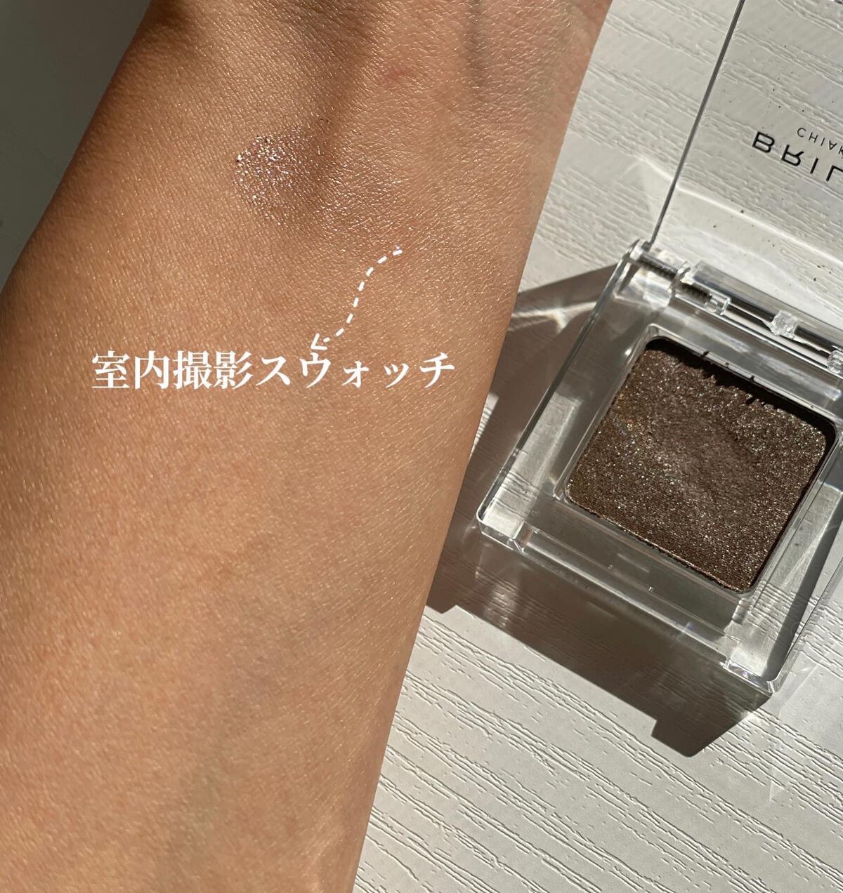 しっとりした質感で、ぴたっと密着しました✨ 透明感があってツヤの高い発色でした! 単色としても、重ねづけしても、粉っぽくならなくて使いやすかったです! 細かいラメが入っていて、薄めだったので仕上げに使うと良いと思います! 大粒ラメではないですが、目の下よりもまぶたに塗ると透明感が出て好みでした! ゴールドブラウンっぽいラメでした✨ マットっぽいですが、細かいパールが入っていて上品なツヤ感がありました! ひと塗りするだけでちゃんと色がつきました 濃いめなので、締め色にすると良いなと思います