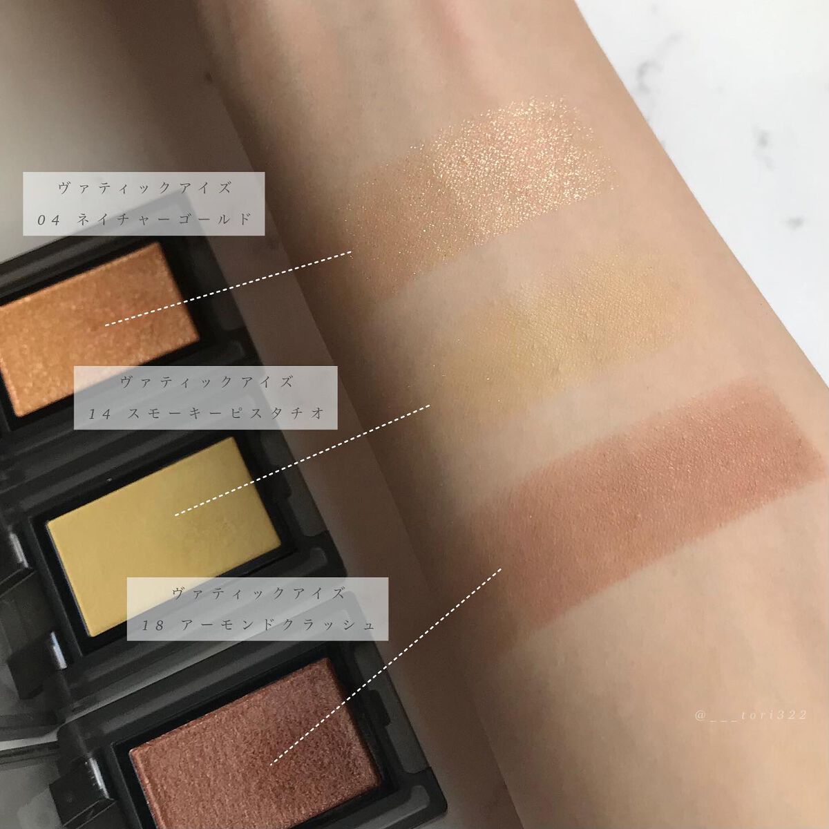 ヴァティックアイズ04ネイチャーゴールド14スモーキーピスタチオ18アーモンドクラッシュ他にも欲しい色はあったんですが、とりあえず特に気になった3色だけ購入しました🐥´-※と言いつつ・・・NOINの30%ポイント還元で2色追加購入してるので後...
