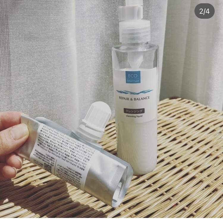高いクレンジング力でありながら、うるおいを保持。 こすらずするんとメイクを落としてくれます。 エコな容器も特徴で、 最初は空の容器と詰替え用のセットなんです。 詰替も液垂れすることなくスムーズにできました。 最初の一回は詰め替えなく入ってるものもあればなおいいなぁと思いました。 クレンジングは乳白色の ややとろみのあるテクスチャー。 そんなにとろみがあるわけじゃないけど、 スルスルと伸びて メイクに馴染みました。 夏場も乾燥するし マスクで荒れるまさにゆらぎ肌なので、 ゆらぎ肌の事を考えてくれてるのがとっても嬉しかったです♡