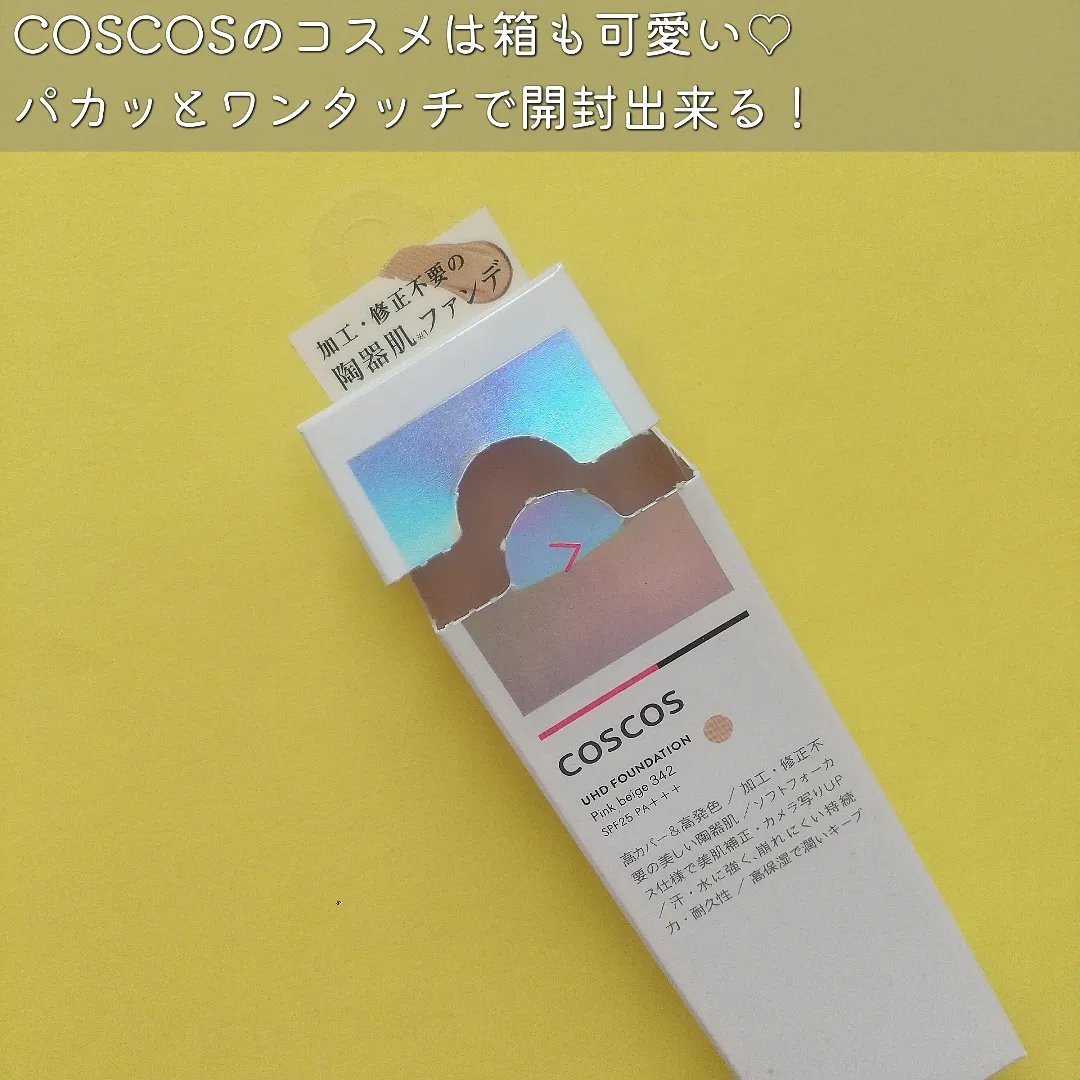 ✼••┈┈••✼••┈┈••✼••┈┈••✼••┈┈••✼塗るだけフィルター肌☁️☁️/アンバサダーを務めさせていただいている"COSCOS"のUHDファンデーション342🥺塗るだけで、レタッチの要らない加工や修正不要のフィルター肌になれると聞いたので実際に使ってみました…✏️💭────────────【COSCOS】UHDファンデーション342¥1,760(税込)🌼ピンクベージュのカラーですが、ピンク控えめでパーソナルカラー関係なく使いやすいと思います◎🌼ファンデーションが¥2,000以下で買えるというコスパの良さも魅力…✨✂ーーーーーーーーーーーーーーーーーーーーこのファンデーション、出してすぐはとてもみずみずしくて肌にのせるとぴたっと密着します😌指かスポンジでの塗布が綺麗に仕上がりやすくおすすめですが、リキッドタイプのファンデーションに慣れてない方はスポンジを塗らしてから塗布するといいかも🥺COSCOSのカラーコントロールベースの後にUHDファンデーション342を塗布して、クリアランクアップパウダーで仕上げると更にフィルター感UPするのでおすすめ📷️✨COSCOSのアイテムはコスプレイヤーさんがよく愛用しているので、化粧モチもばっちりです👌◎完璧肌・肌への優しさ・使えるコスメ3つのこだわりを大切にして開発されているのでぜひCOSCOSチェックしてみてください🐰♡公式アカウントはこちら🙌↳@coscos_makeup✼••┈┈••✼••┈┈••✼••┈┈••✼••┈┈••✼#PR#coscos#coscosmakeup#毛穴レス肌の作り方