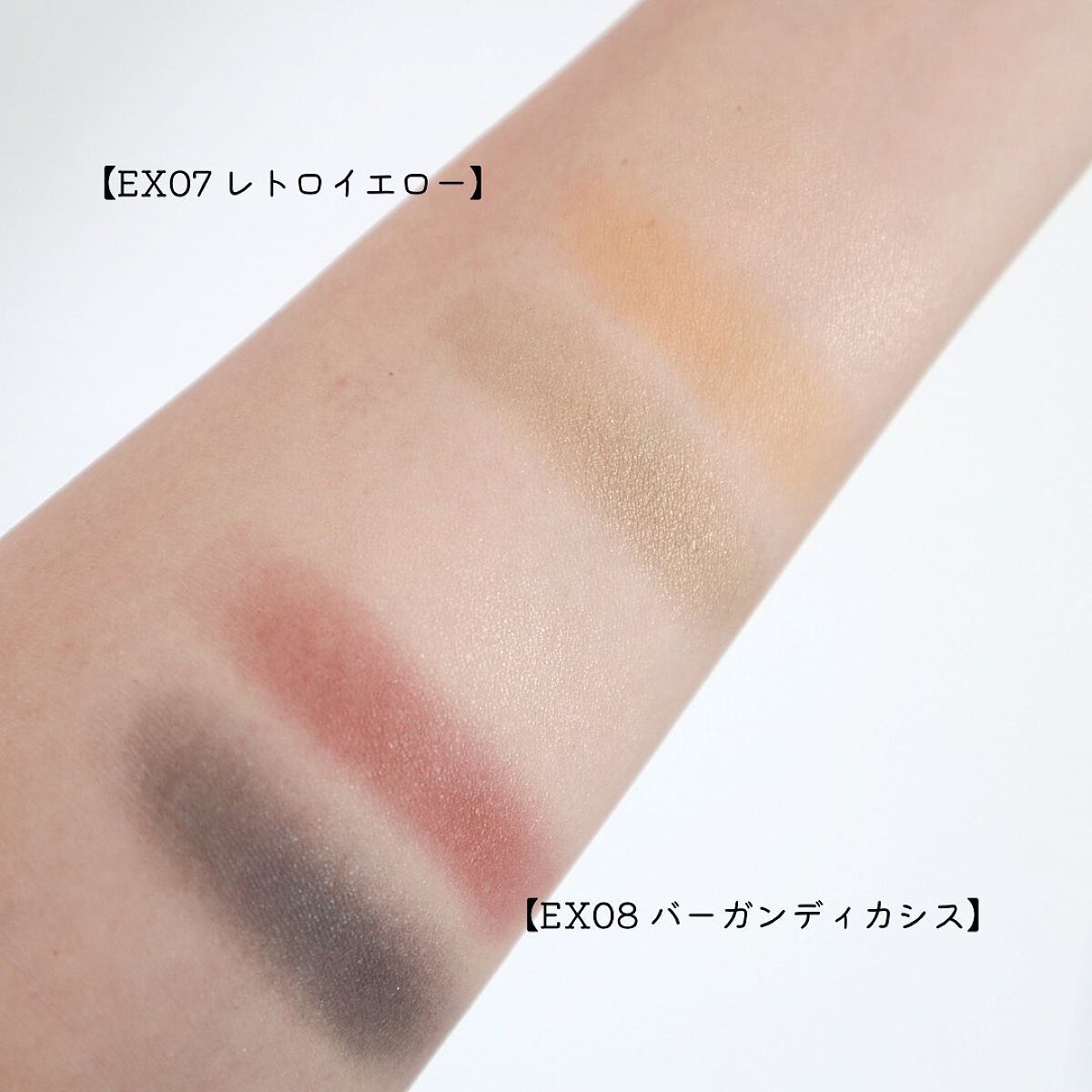 アイパレットに限定色が登場するよ! 懐かしい【60’sカラー】をテーマに今だから感じる新しさを楽しみながら深みメイクやニュアンスチェンジで印象的な目もとを叶えるアイパレット✔︎ アイライナー風メイクにも奥行きのあるグラデーションにも組み合わせや使い方次第で様々な印象のメイクが楽しめます☺️✨ 【EX07 レトロイエロー】はくすみがかったイエローと渋みのあるグリーンで柔らかく明るい印象の目もとへ。 【EX08 バーガンディカシス】は深みのあるカシスとネイビーでクールでエレガントな目もとへ。 個人的には【EX08】が普段のファッションと合わせやすくて好みなんだけど…… 【EX07】がものすごくお洒落だからこの色合いに合う服を新調したいな~なんて思っています🥺💗