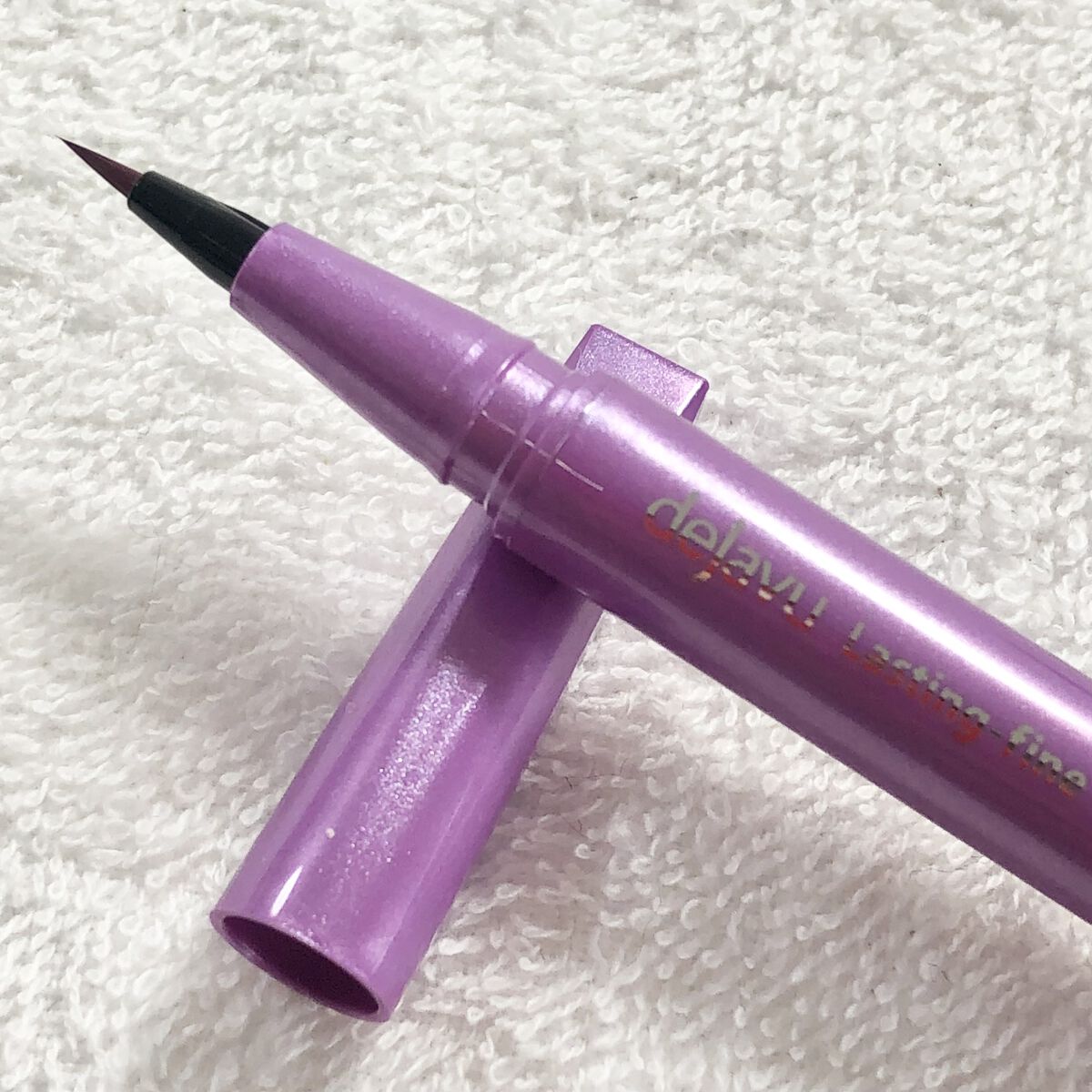 注目すべきポイントは、3つ🙌🏻 筆丈5mmのショート筆でしなりにくい! 極細ラインがブレずに簡単🎶 皮脂、汗、涙、こすれに強く、綺麗なラインが続く(ウォータープルーフ) お湯だけで簡単にオフ! 筆丈5mmのショート筆は、かなり推したいポイント! 筆先が短いだけで、こんなに描きやすさが違うとは✨ 少し力が入っても安定して極細ラインが描けちゃう◎ はねたラインを描きたい時や、細かい位置にラインを描きたい時にとても便利で、 デジャヴュさんのコスメは、仕上がりが良く落ちにくいのにクレンジングするとスルスル落ちるところが魅力𑁍𓏸𓈒 今回のピンクカシスは秋メイクにピッタリな絶妙なバランスカラー♡ 華やかな印象×肌なじみが良いを叶え、お洒落な雰囲気を楽しめます🍁 贔屓目もありますが、この色好きですオススメです。