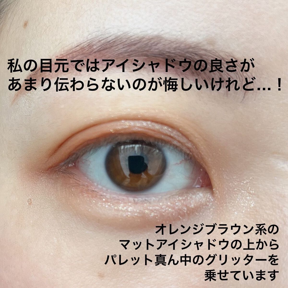 リメンバーの3色フローラアイパレットでメイクしました✨️ マットの粉質は柔らかくしっとりしていて高発色! 粉飛びもせず、ドカッとつかないので色の濃さが調節しやすいです ラメの粉質は柔らかくてサラサラ! 高密着でしっかり輝いてくれます ☆のカラーは柔らかいオレンジ味のあるベージュカラーで薄くぬればベースにもなるし濃くぬればメインのカラーにもなります △のカラーは見た目より明るく発色します 明るめのオレンジブラウンカラーなので目元が重たくならない仕上がりに✨️ ♡のカラーはザクザクのラメカラーで薄いベージュカラーのベースにシルバーやゴールド、ピンク、イエローのラメが入っています オレンジブラウン系のアイライナーやマスカラと合わせるとオシャレなブラウンメイクになります🍊 3色でしっかり決まる優秀アイシャドウです! ぜひ試して見てください🌷