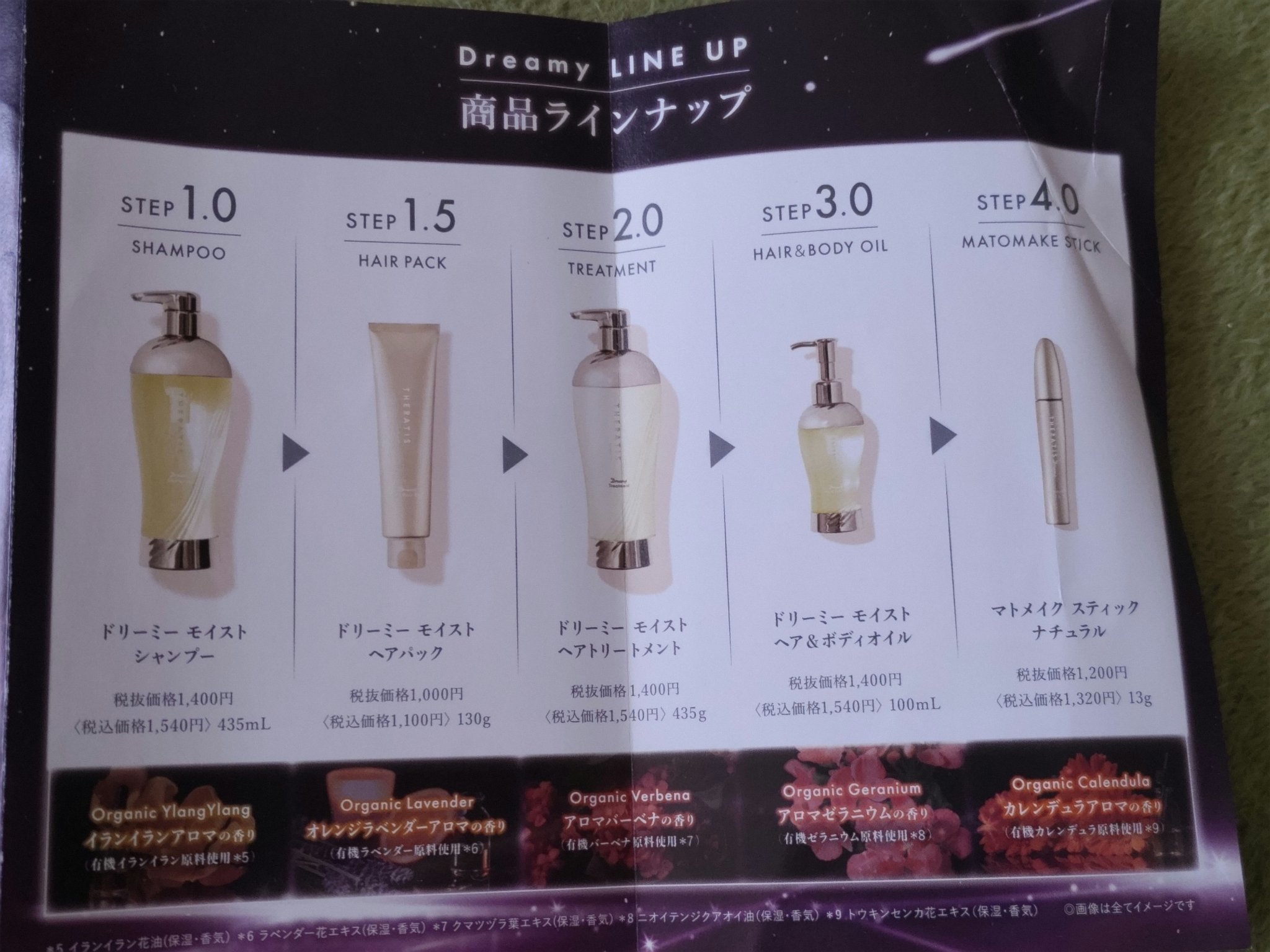 【レア】癒されヘアケア【パンフ付き】2022年にお店でもらったパンフレットを画像で載せます📖🌼バーベナの優しい香り。甘すぎないのが丁度良い。🎀吸湿毛でパサパサしがちなのですが、翌朝の指どおりがスルスルと気持ちよくなりました。🧴ボトルがツヤツヤで、置くだけでときめきます。透明なので残量が分かりやすいのも助かります。#THERATIS#セラティス#ドリーミーモイスト#ヘアトリートメント