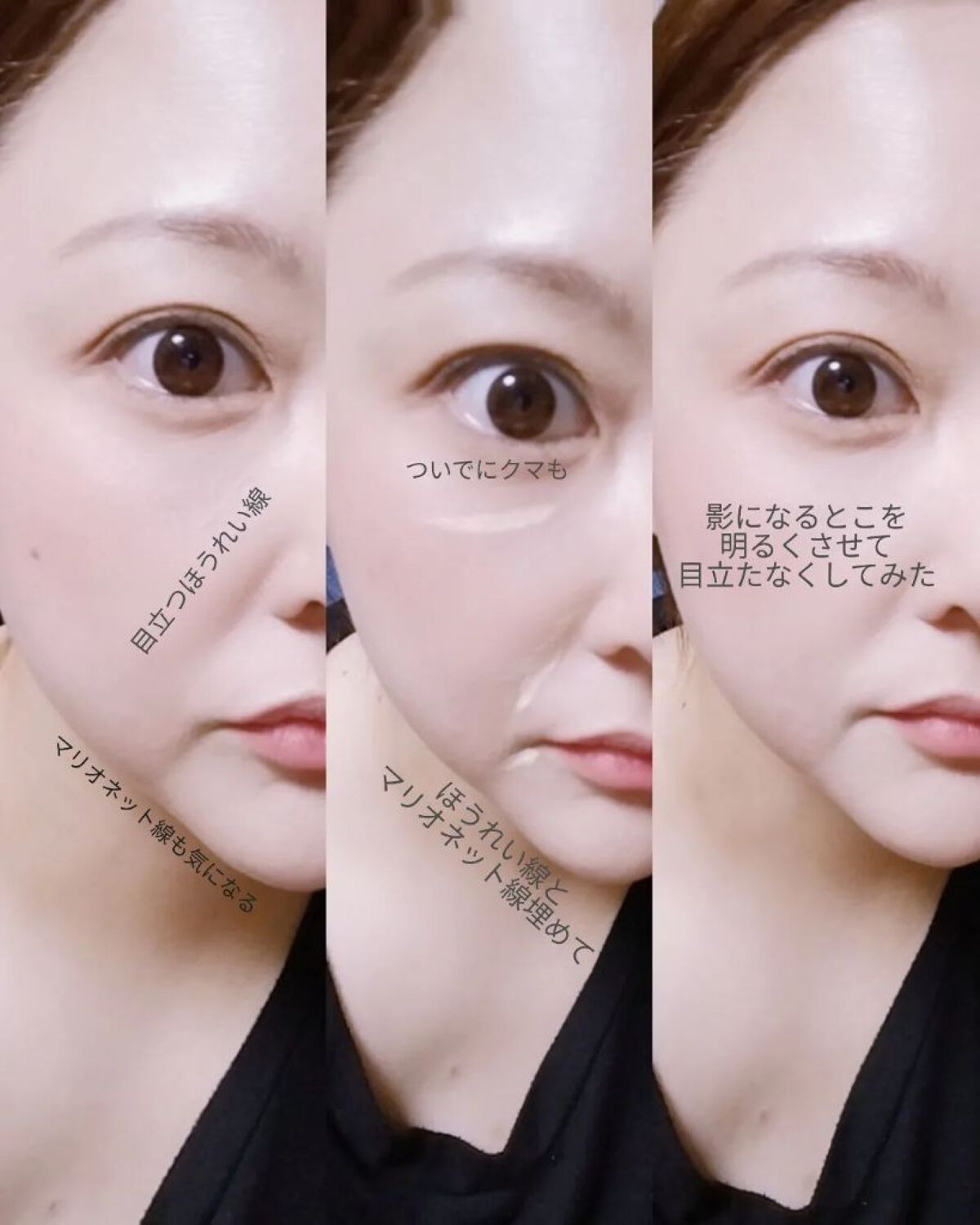 下地にDermaJ サンクリーム+を使用し、その後CEZANNE 毛穴レスコンシーラーを毛穴の気になる部分に塗ります。 ファンデーションは使用せず、DECORTÉ サンシェルター トーンアップCCをファンデ代わりに使用。 コンシーラーは2色使用し、明るく見せたいところ、カバーしたいところで使い分けています。