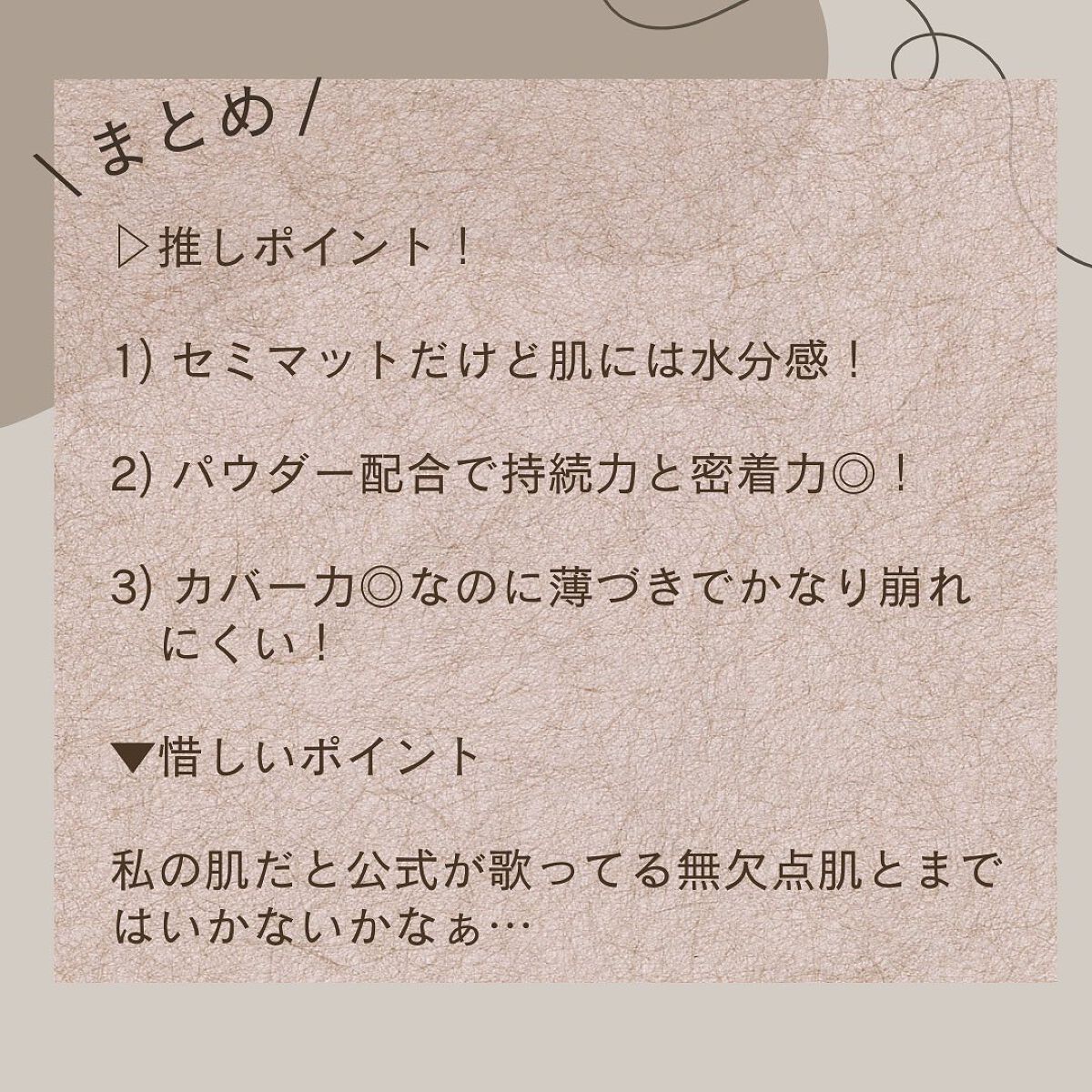 | ファンデーションランキング第21位 | セミマットな仕上がりです。細かいパウダーが施されているようで、軽くお肌に乗りました! | 詳細を見る |