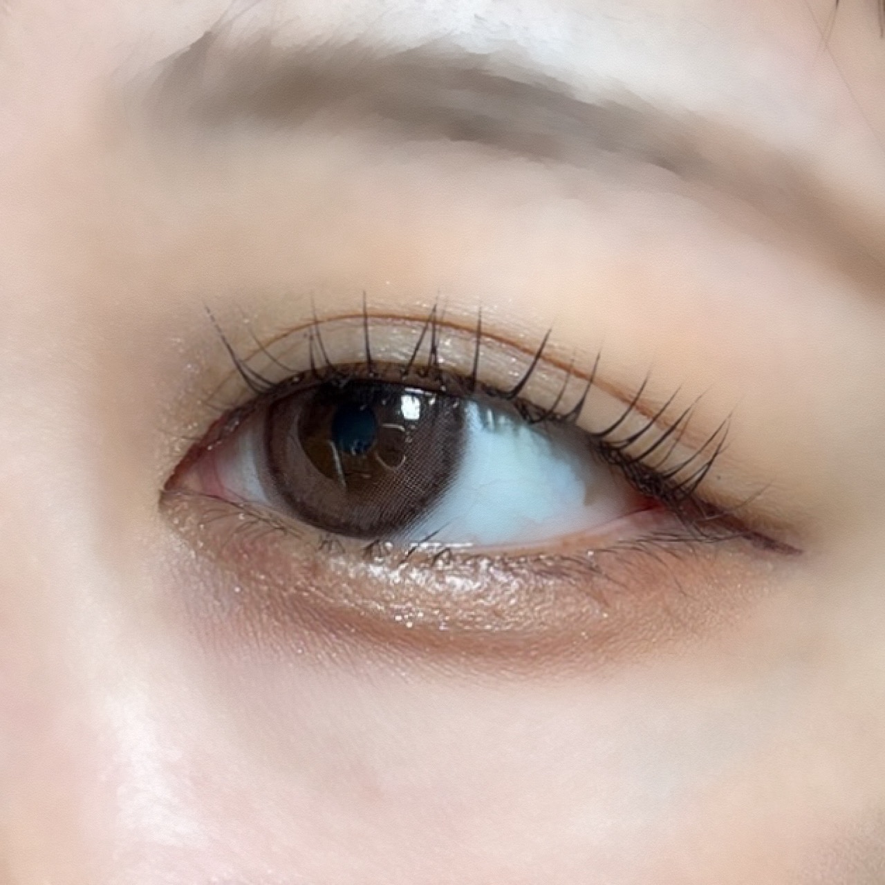 温かみのあるピンクブラウンカラーなので青み発色じゃないピンクカラコンがお好みの方にはぴったりだと思います 意外とくっきり&キリッと大人っぽいクールな目になる印象でした。 白目の透けは全く感じず、中心のなじみもとても綺麗で、ピンク系に多いくり抜き感も感じにくいです