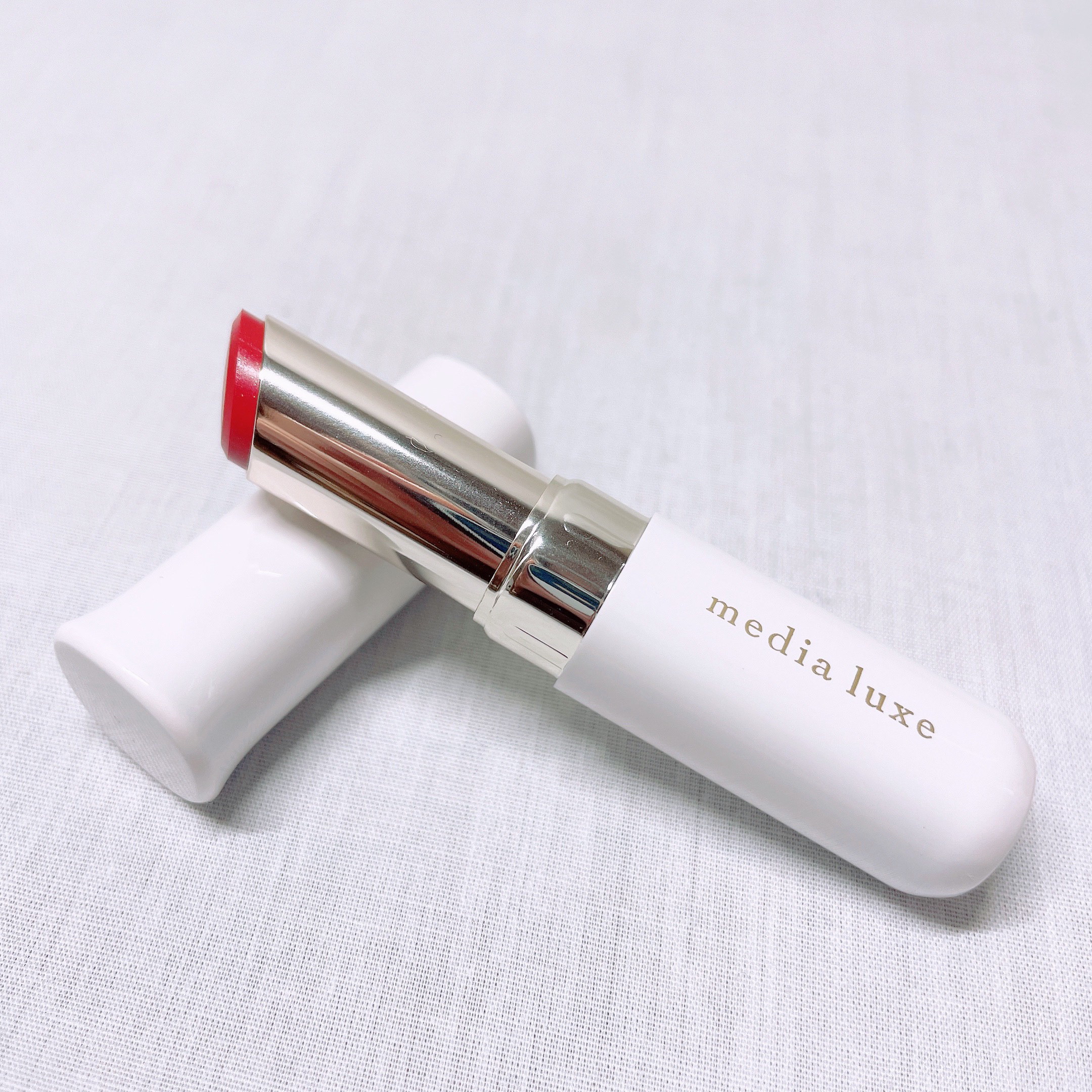 うるおいティント!!!この度購入したのは、medialuxeティントルージュRD-04と口紅用ケースSです。メディアの新しいラインです!!!口紅用ケースはS、M、Lとあり、コンパクトに持ち運びたかったのでSにしました。手に持った感じも馴染むのでお気に入りです。リップはうるおいがあって乾燥しにくいと思いました。ティントですが、もちはうーん。という感じでした。何も食べたり飲んだりしなければ落ちないですが、パスタを食べたら唇の真ん中だけ落ちているのがわかってしまい少し残念でした。パキッとした色なだけに目立ってしまいました。色と塗り心地はいいので、短時間のお出掛けや、塗り直しに使いたいと思います!気になった方はチェックしてみてください!!!#メディア#medialuxe