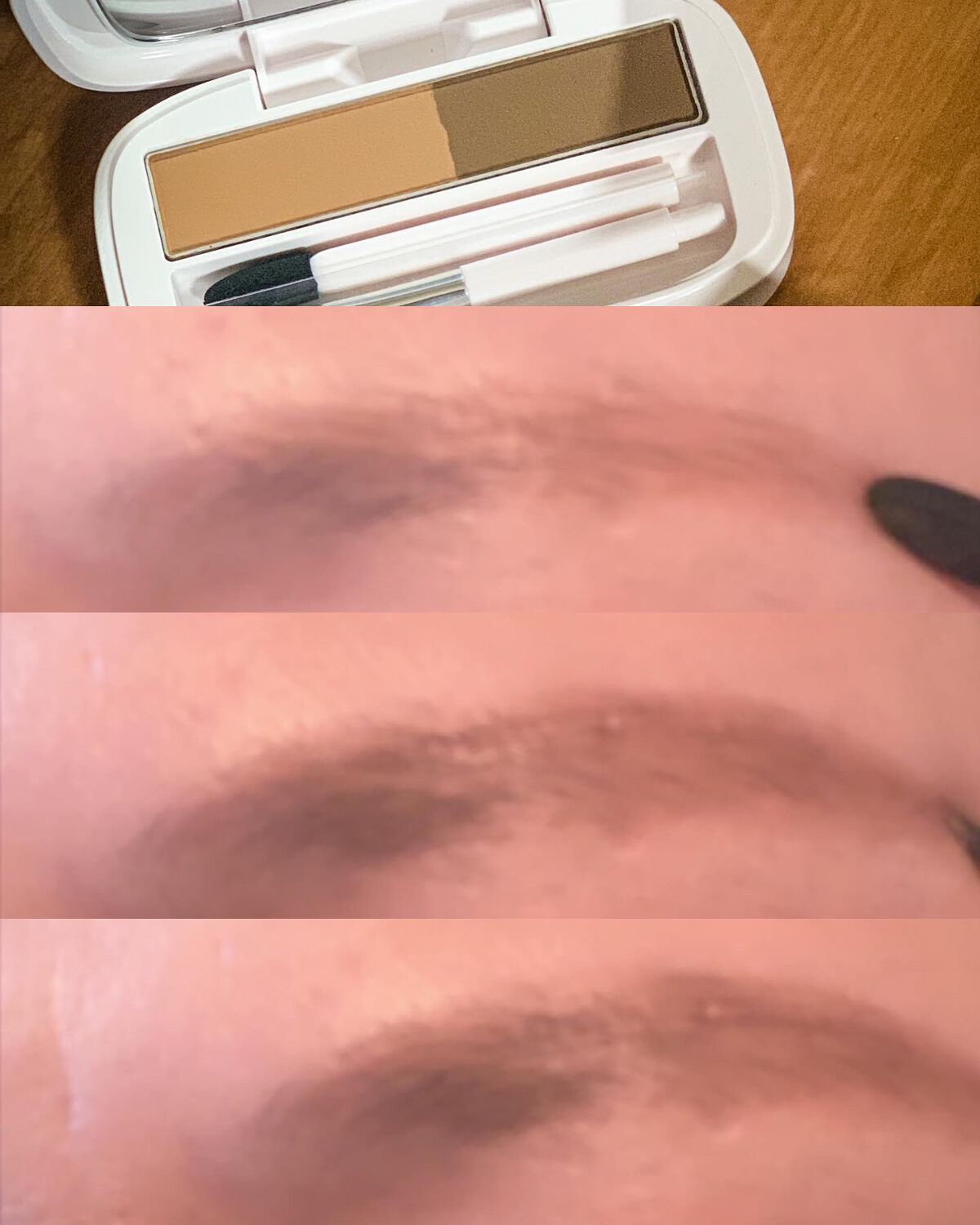 ・「メディアリュクスパウダーアイブロウ】*ピンクブラウン*ミディアムブラウン2色を使用させていただきました。チップとブラシをつなげられる、便利な連結タイプが採用され、しっかり握れて描きやすいのが特長なので簡単にふわ眉に仕上げられます。チップで疎らな部分を簡単に補修、ブラシで細かい眉ラインなどの形を綺麗に整えて描くことができます。毛のない部分にも面で色のせ出来、粉がしっかりフィットして発色が良く、つけたての色とカタチが1日中持続します。優しいメイク印象に導いてくれるパウダーアイブロウです。高発色フィットパウダーが眉毛の薄いところでもしっかり密着し、きれいに発色。さらにふんわりニュアンスパウダーが自然な陰影と立体感を生んで、描いた感のない自眉のような仕上がりへ導きます。皮脂に強く、時間が経ってもつけたての色が続きます。年齢を重ねると、毛が少ない・毛がまだら・色がのらない、などの増えがちな眉悩みにバッチリ適しています。1540円(税込み)※自分調べプチプラなのも優秀ですね、オススメです![PR]「メディア」リュクスのプロモーションに参加中#メディアリュクス#パウダーアイブロウ#カネボウ化粧品#プチプラコスメ#描きやすい#落ちにくいアイブロウ
