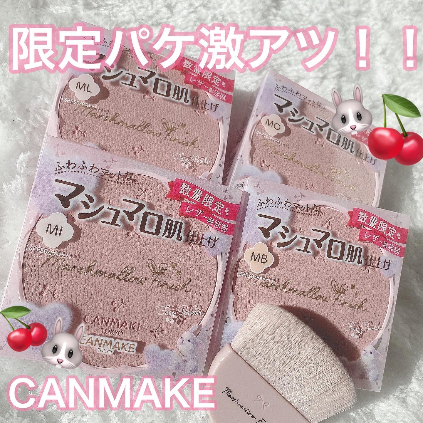 ♡••┈┈┈┈┈┈┈┈••♡#prキャンメイク様からいただきました。"CANMAKE"マシュマロフィニッシュパウダー全色マシュマロフィニッシュパウダーブラシ.高校生の頃初めてマシュマロフィニッシュパウダー使った時の感動は今でも忘れんくらい🥹だんだん歳をとりデパコスでメイクすることが増えたけどこの限定パケ見た瞬間久々に買う!って決めてたのストーリーのせてたよね確か🥹💗そしたらまさかまさかのキャンメイク様からいただけたのでレビュー🐰.レザー調の少しだけふかふかしたパッケージが見た目最高に可愛いくすみピンクみたいな色🩷.オールシーズンタイプ洗顔料・石けんでメイクオフ(単品使用時)SPF50・PA+++とクオリティ高いのに¥1,034(税込)のプチプラ価格!初めて使った時はもう陶器肌!ってコレかって初めて実感した瞬間✌️厚塗り感は感じず やわらかいマシュマロ肌っぽ🫧.全色試したけど全部肌馴染み良くてその日の気分で使い分けたい!肌を明るく透明感だしたいときは1番明るい色つかいたいな〜🫨.専用のブラシと使うとさらにふんわりとした肌になるからセットで買うのがオススメ!.久々に使ったけどこれはやっぱ一つ持ってて正解だわ✅10月下旬限定発売やからみんなゲットして!!🍒#ガチモニター_キャンメイク#キャンメイク#CANMAKE#プチプラ#コスメレビュー#マシュマロフィニッシュパウダー♡••┈┈┈┈┈┈┈┈••♡#実はこれプチプラなんです