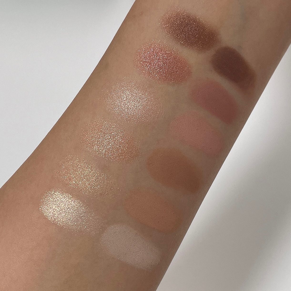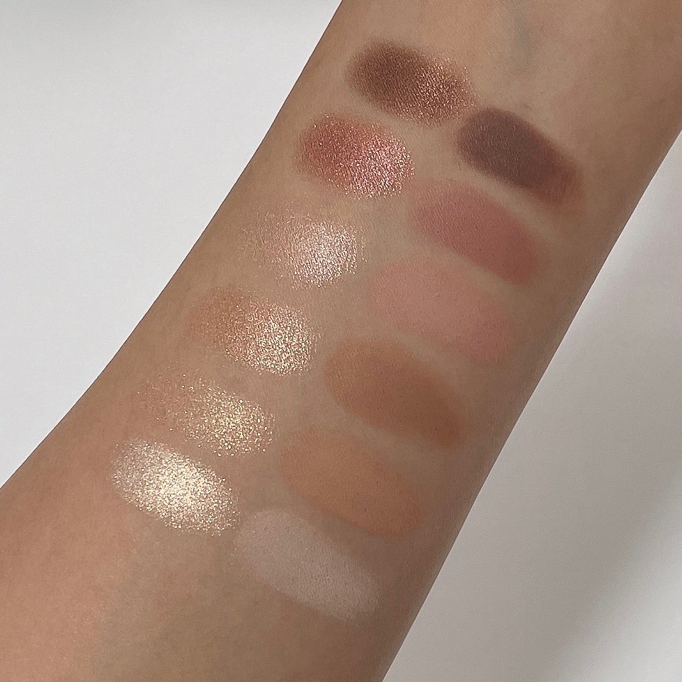 高発色で粉質も良かったです!マットはなめらか、グリッターはしっとり。 グリッターは細かいものでも粒が1つ1つ強く輝いてくれます。 発色が強いシマーカラーはメタリックな仕上がりでした。 微細パール入りでふわっと色付くチーク。パールがキラッとしてくれてツヤ感も🙆♀️
