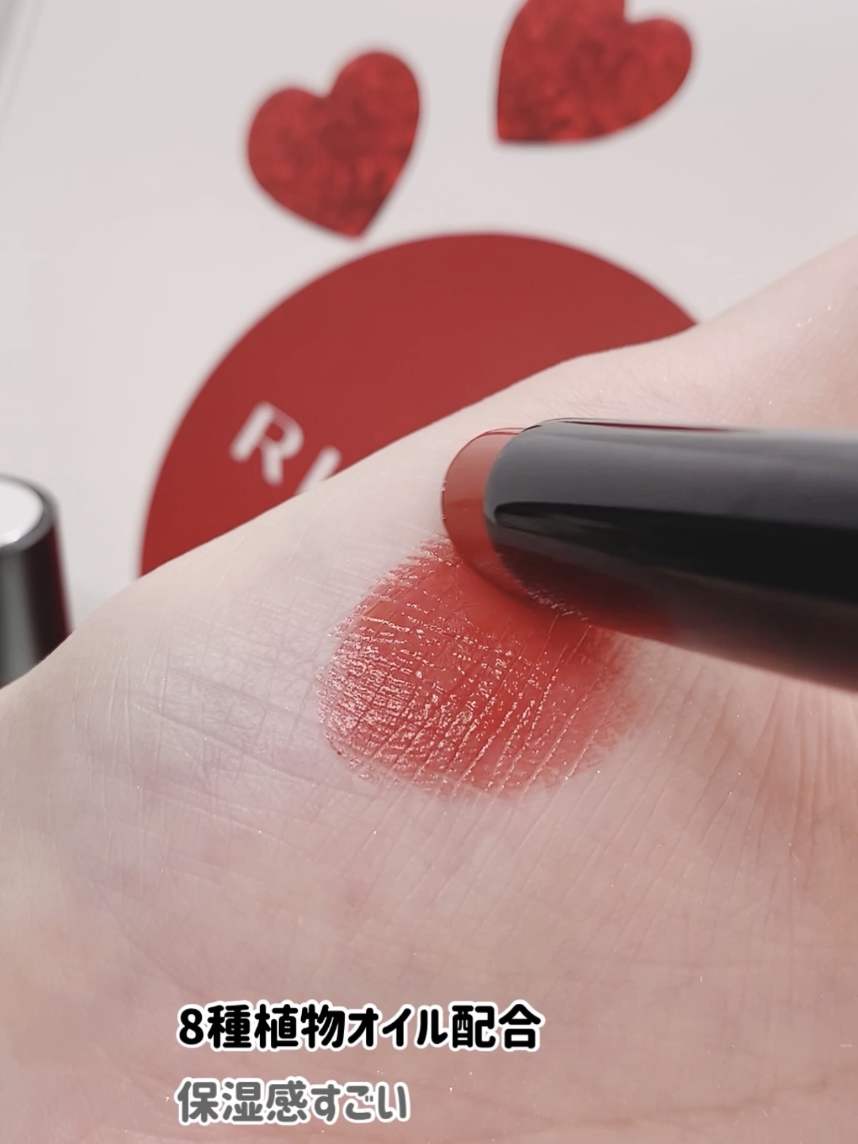 濃厚なテクスチャーで発色良い スルスルとろける 長時間、乾燥、唇荒れを感じず保湿感があって しっとりの塗り心地 ふっくらの艶っぽい仕上がりすごく好き!🥰 スパイシーな強さで魅せるチリレッド