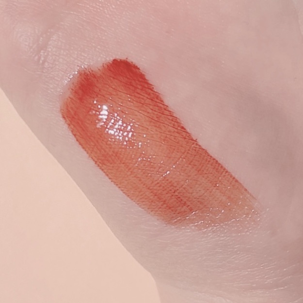 瑞々しい水分感のツヤテクスチャーがきれいなティント♡ 唇にのせても色が変わりにくい見たままの発色してくれるタイプ。 温かみのある濃厚なオレンジブラウンで上品な色合いとほんのり透け感がかわいい…♡ 赤くなりやすいときは、くすみリップを下地に仕込むと良さそう!