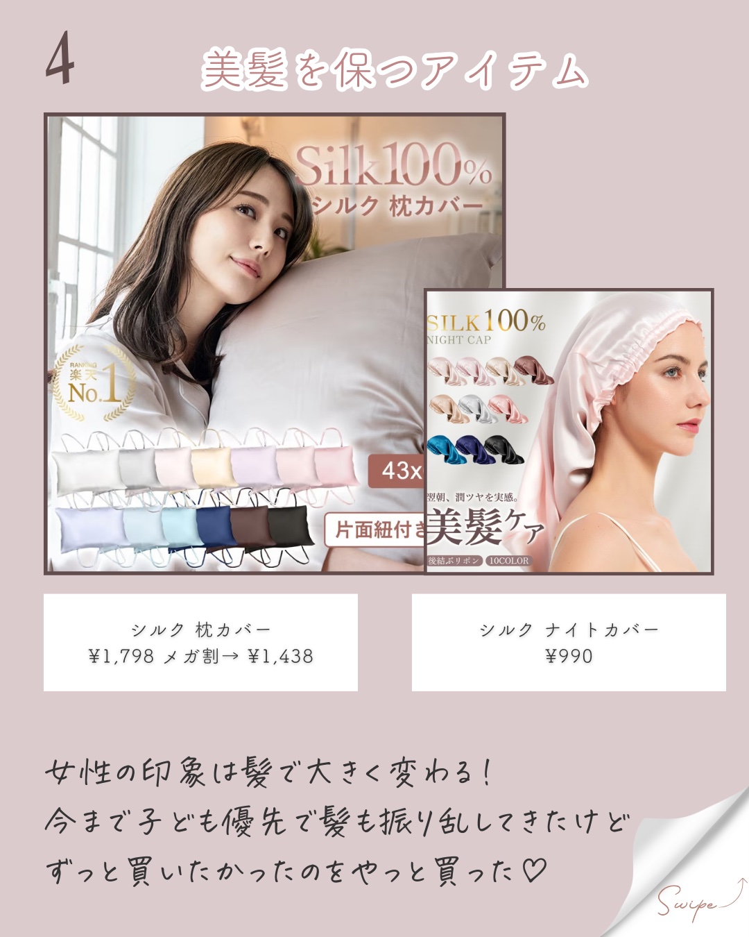 最近はメイクと服装に加えてヘアケアにも力を入れていて 後ろ姿や横顔も綺麗になれるように工夫しています 暗髪は特に艶や透明感が重要です🫐❤︎ 今回特におすすめしたいのがシルク素材.ᐟ.ᐟ 摩擦のダメージがないだけで朝のセットが楽ちんだし ストンと落ちるなめらかな髪質になります~🫶🏻 ほんとにほんとにおすすめなのでぜひ試して見て~