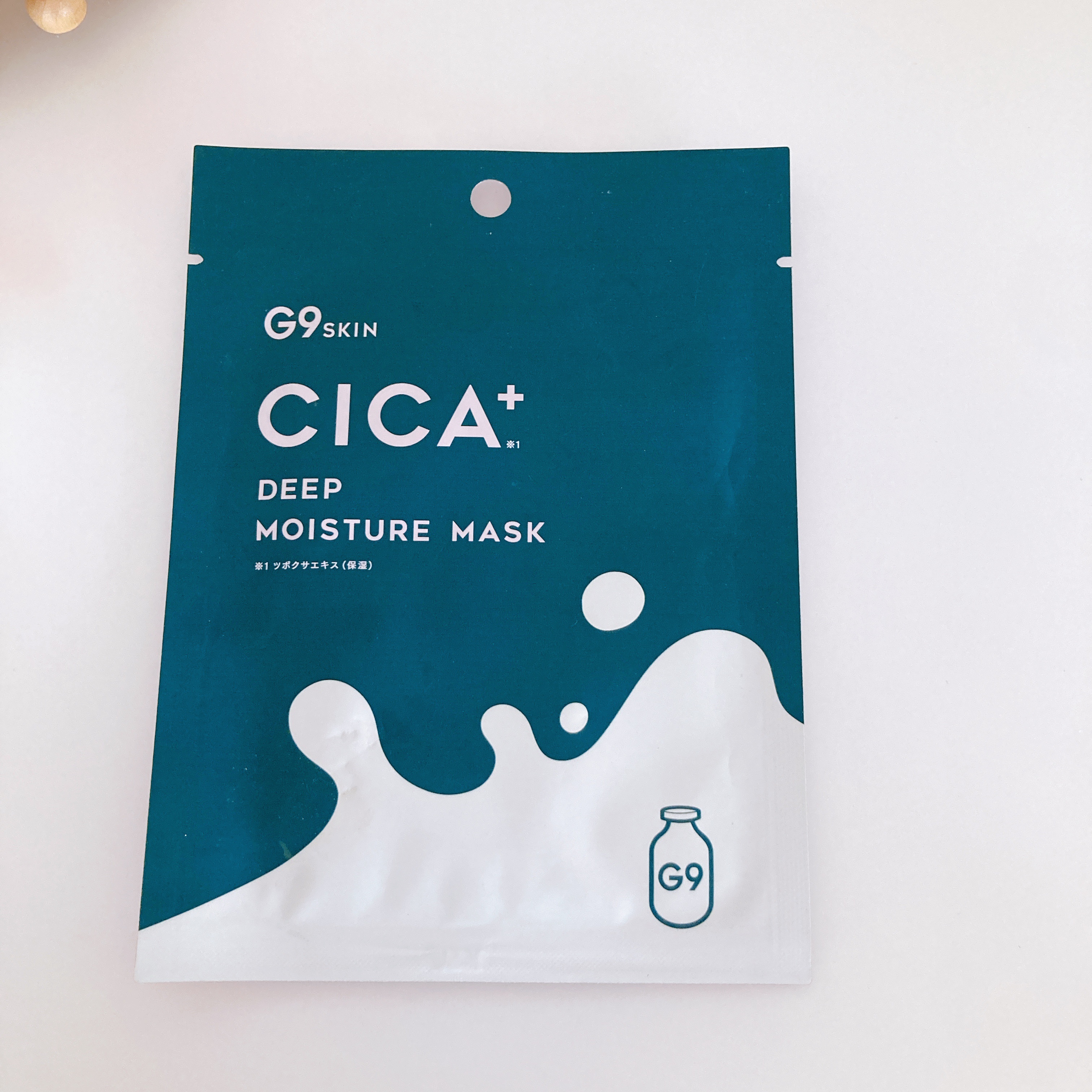 肌の乾燥に、cica+のケア----------♡----------G9skin cica+DEEPMOISTUREMASK----------♡----------<商品特徴>▸▸日本限定販売▸▸ツボクサエキスの他29種類の保湿成分配合↳トーンアップ、肌トラブルケア、保湿効果<使用感>コットンのようにフカフカなシートがとっても肌当たりが優しく気持ちよいです。マスクのサイズは大きめでちょっと目の周りが空きすぎてるのが気になるかな。。美容液の含みがいいシートでひたひたにっ浸ってるので乾かずにしっとり潤いケアがでました♪すっきりとしたハーブの香りが心をほぐしてくれるのも良かったです。しっとりするけどベタベタしないので重たさもなく使いやすいマスクだと思う。気になるトーンアップだけど、保湿が高いから肌が潤ってはがした直後はトーンアップを感じました。4枚入りで924円なので1枚231円だからデイリー使いには少しお高めだけど保湿も高いし週に1.2回使うにはちょうどいいかも。┈┈┈┈┈┈┈┈┈┈#cicaディープモイスチャー#潤いチカラ#肌トラブルケア#ツボクサエキス#保湿革命#春の紫外線対策#目指せ毛穴レス肌