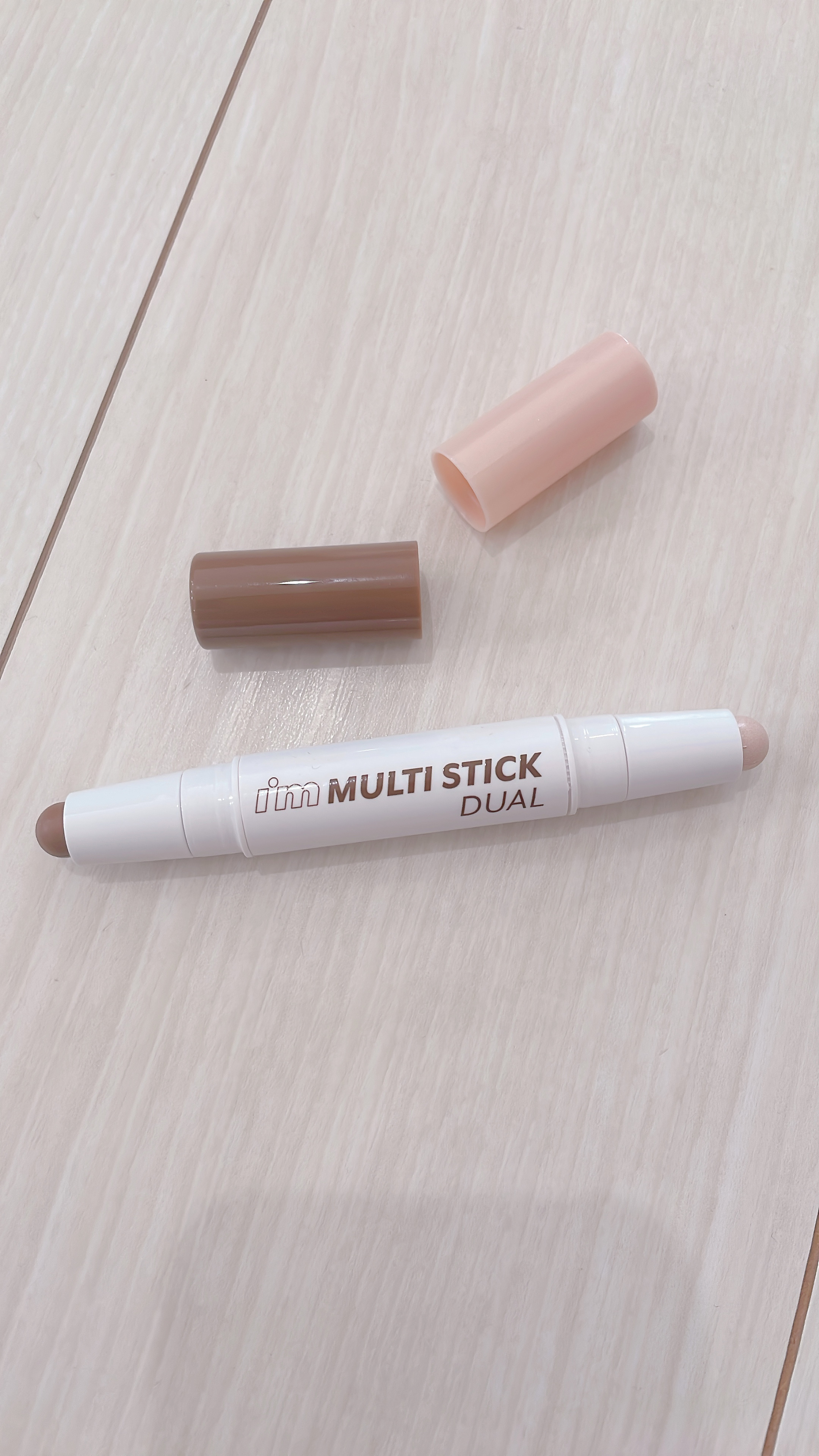 【i’mmemeアイムマルチスティックデュアルデュアルフェースカラー】ハイライトとシェーディングがこれ1つで出来る😄時間が無い時に、シェーディング出してハイライト出してってやらなくて済むから画期的☺️芯も柔らかく塗りやすい!きちんとファンデまで塗ってからやるのがオススメ✨ホントに時間が無い時メイクで下地にパウダーだけの時に乗せちゃうと色が浮いちゃうかも🥲きちんと顔を仕上げた時に使ってスポンジでぼかすといい感じになるかなと思った😊スティックだから持ちやすいしポーチに入れてもかさばらない🤭