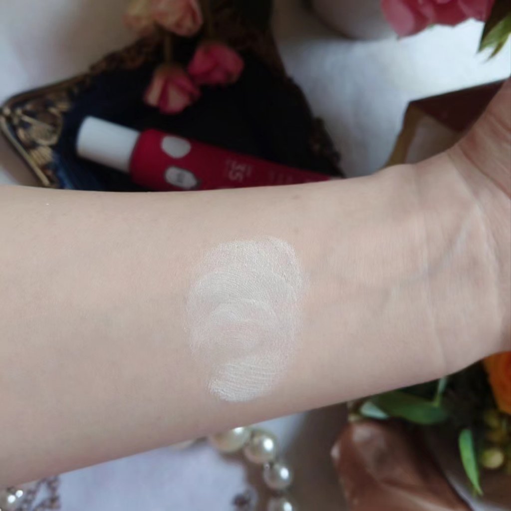 少量で伸びの良い ホワイトベースクリームで 肌を全体的にトーンアップ 顔全体に塗りすぎると 白浮きするかもだけど 部分的に使うと 自然なツヤと ハイライト感✨ 軽いつけ心地だし SPF35 PA+++だから 普段使いに良い☀️