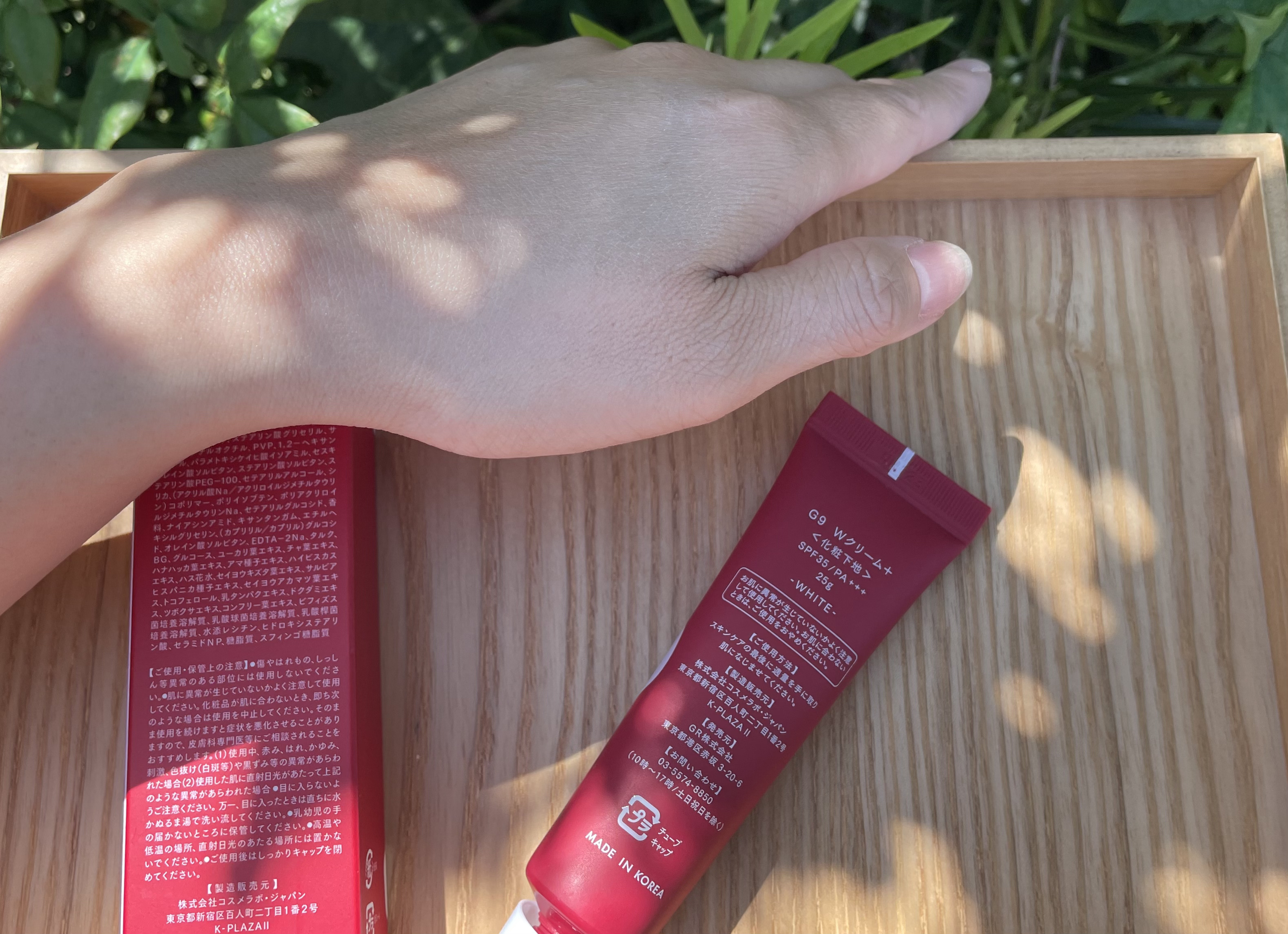 前に流行ったボトルタイプのG9 SKINのウユクリームも使った事ありますが、確か日焼け止め効果もなく、ただ白くするだけだったような🤔 めちゃくちゃ進化してる🤙 私のホワイトは乳酸菌配合。ツヤと立体感が出せる。 他に ラベンダー…ヒアルロン酸 イエロー…VITA グリーン…CICA 全部欲しい❣️