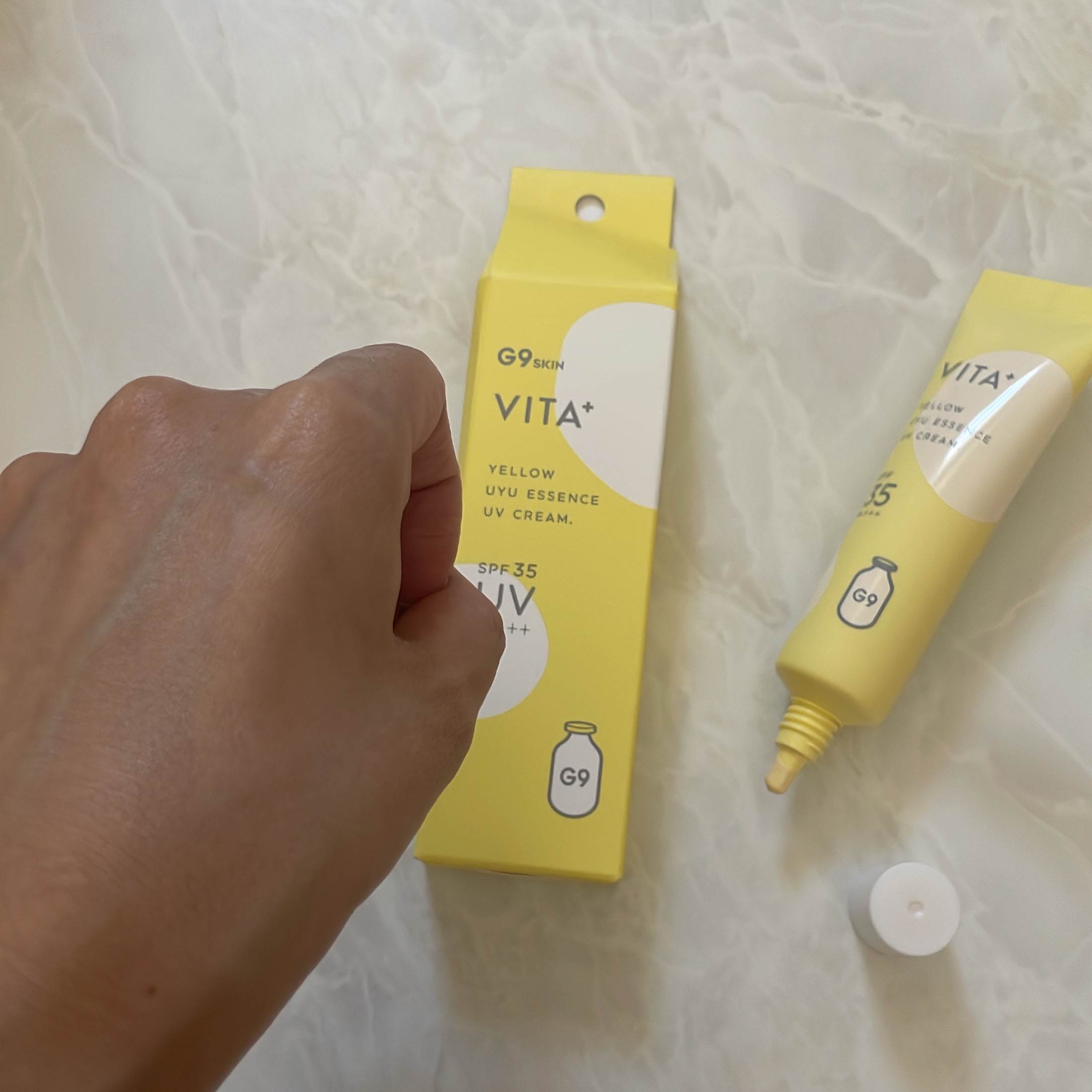 G9SKIN様から発売されている下地😉✨あのウユクリームがリニューアル🤗新トーンアップ下地✨【G9SKIN】『ウユエッセンスUVクリーム』🧷25g🧷¥1,210円🧷イエロー💎VITA(イエロー)💎✅イエローのくすみや色沈みをカバーしてトーンアップ✅VITA成分10種、乳タンパクエキスG9コンプレックス成分(9種類の植物エキス)セラミド、ナイアシンアミド配合で肌にうるおいとツヤをもたらす。【レビュー】🔸あのウユクリームがコンパクトサイズに😳くすみや目元のクマが気になっていたので😵💦イエローの下地を購入しました😉✨自然にトーンアップできて下地のテクスチャーも伸びも良くって大満足🤗Qoo10のメガ割でかなりお安く買えて嬉しい🥹😚💕#G9SKIN#ウユエッセンスUVクリーム#韓国コスメ#レビュー