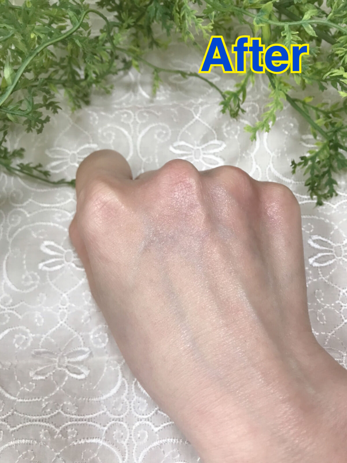硬めのテクスチャで、少量で出していきます。 少しシャイニーな感じで伸ばして使うと、しっかりとくすみが飛びました! 使い方が難しいですが、うっすらと伸ばすとかなり、いい感じでした! たっぷり塗るとよれちゃうので、要注意です。