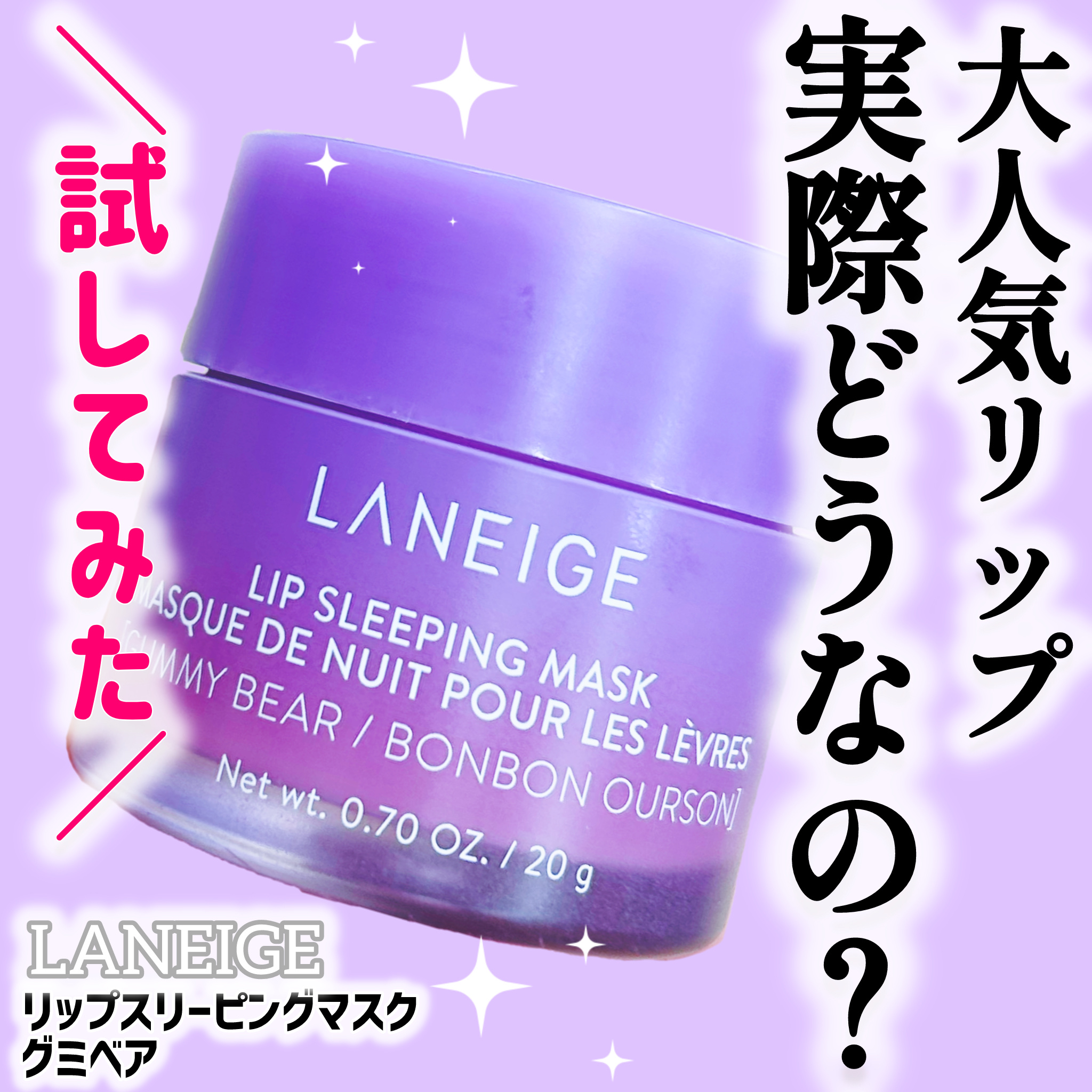 LANEIGEリップスリーピングマスクグミベア🧸💜めちゃくちゃねっとりしていて保湿力高いし匂いが最高です!!ピュレグミの🍇の中身の匂いって感じがするので甘いものが好きな人だったら幸せだと思います!形もころんとしてて可愛いしまたリピします!...