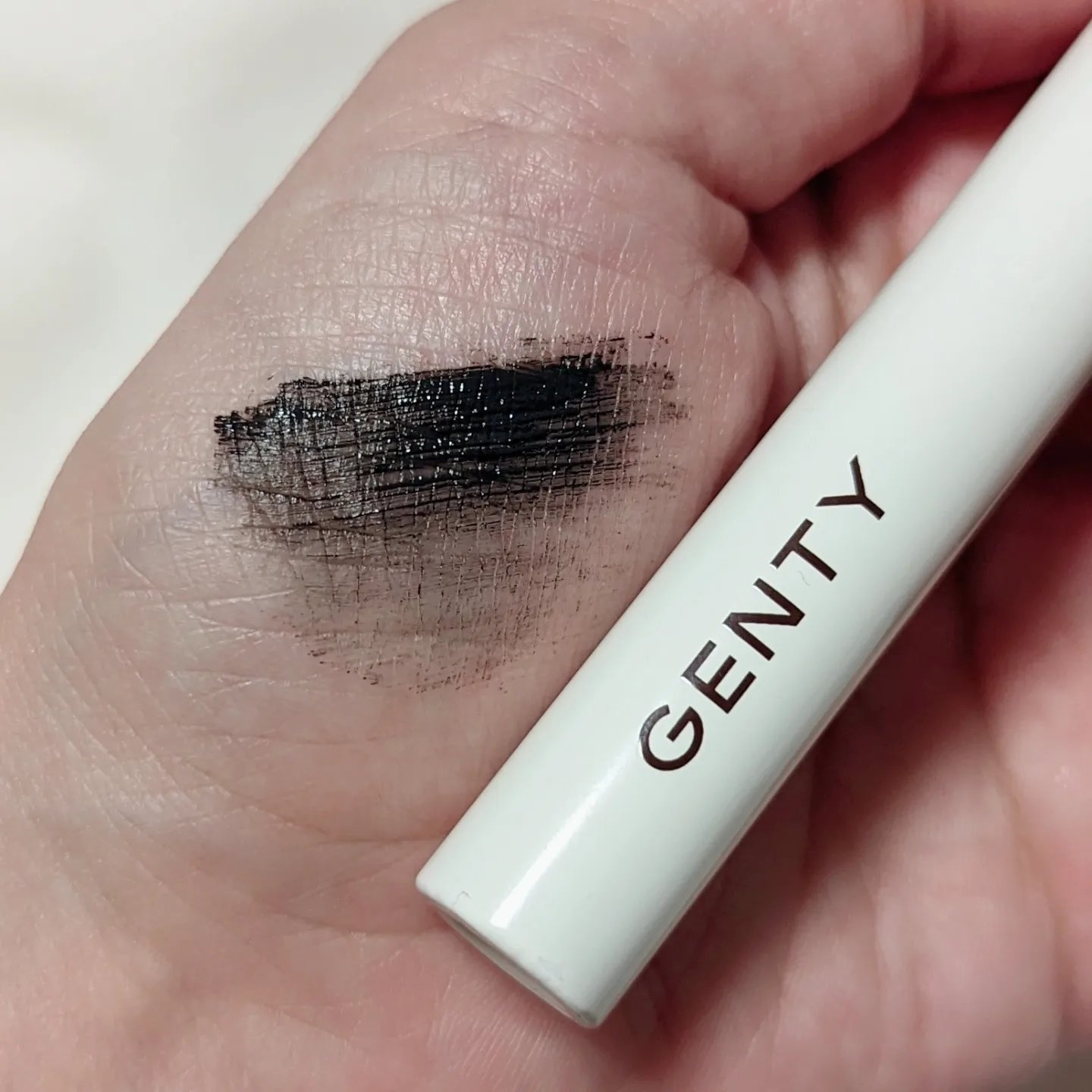 こちらのGENTYというコスメは、『新しい自分になる、そして自分を好きになる』をテーマにつくられているんだそう。 こちらのマスカラは、メモリーミーブラックグレージュというなかなか聞きなれないカラー。黒ではない、ブラウンでもない、グレージュ。濃すぎないけど、薄くもなくすごく絶妙な色。 カラーマスカラすぎると使うアイシャドウを選んでしまうし、でもノーマルな黒ではくっきりしすぎてなんだかな…と思う方にもオススメ。 ケア成分にアルガンオイルとオリーブオイルを配合しているんだそう。 更に汗や皮脂、涙、摩擦、マスク蒸れにも強い処方だそうです。 ブラシも大きすぎず、小さすぎず。少しカーブしているので、目の形に合わせてとても使いやすかったです✨ あまりダマになる感じもなく、繊細にまつ毛を作ってくれる、すごく気に入ったマスカラでした✨