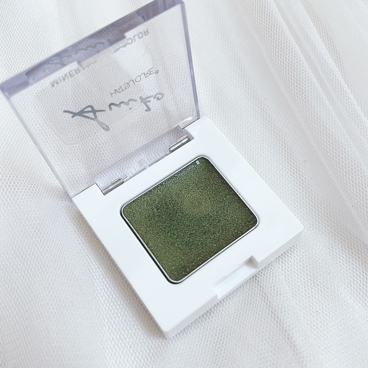 見た目もオシャレなアイシャドウです! ミネラルなのに美発色&高密着カラー ・「高精製マイカ」が発色キープ ・「シリカ」が光を拡散 ・余分な皮脂吸着でヨレにくい ・グラデーションも◎ ミネラル+天然由来成分100% ・オーガニックオイル/オリーブ果実油・ホホバ種子油・アルガニアスピノサ核油 ・フラワーエキス/アルテア根エキス・アルニカ花エキス・フユポタイジュ花エキス・ボタンエキス マルチに使えて石鹸でオフ クリーム質感で、肌に塗るとパウダーになるタイプだそうです! とてもしっとりした使い心地🙆♀️ 細かいラメ感が綺麗です✨ グリーンで難しいかなと思いましたが、意外と肌馴染み良くてびっくり( °_° )👏👏 とってもオシャレな秋カラーだと思うので、よかったらチェックしてみてね☑