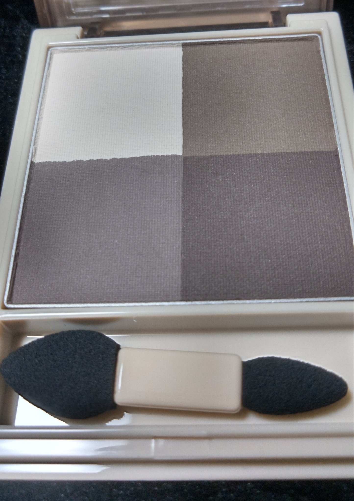 4色全てマットです。韓国系のコスメに入っているザマットではなく若干透け感があります。 各カラーの仕切りがないので色を混ぜやすいのも特徴。 左上はベージュなのですが、白っぽい印象が強いです。他の3色はグレーなのですが、結構濃いめなので、このままだと締め色でも使えます。だからこそ左上と混ぜて少し色を薄めてから使った方がいいかなと思いました😀 でもプチプラでグレーのアイシャドウは中々ないので、一つ持っておくのはいいと思います。