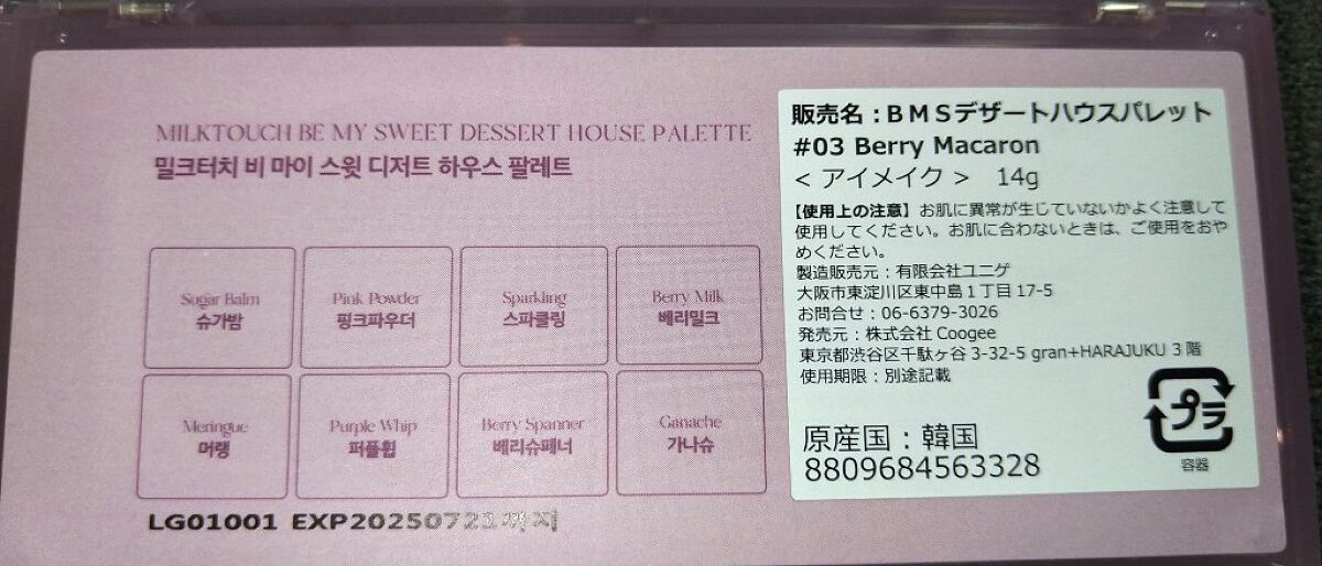 関連する記事Milk Touch(ミルクタッチ) ビーマイスウィートデザートハウスパレット 03 Berry Macaron