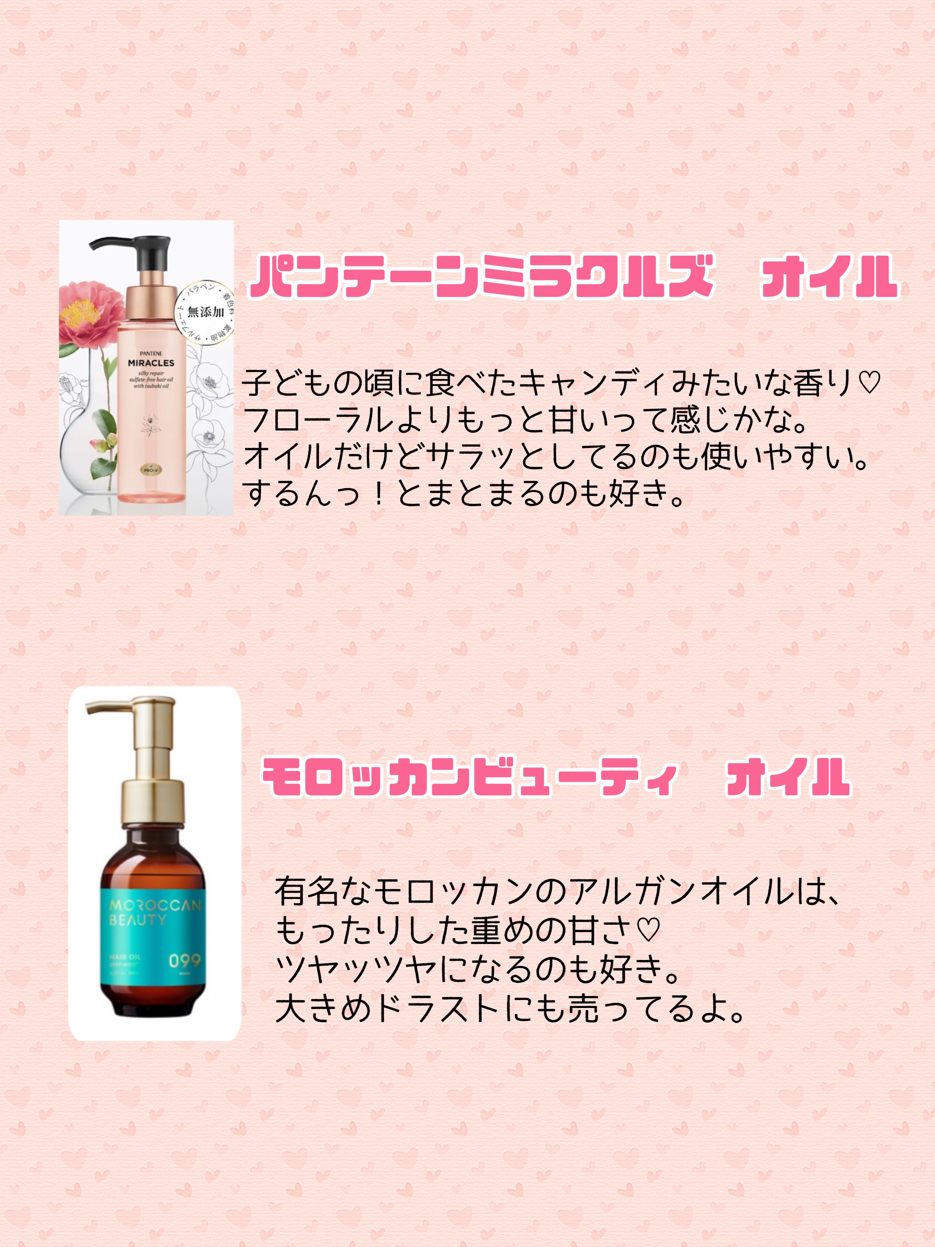 ロングヘアになってから「いい香り!何のシャンプー使ってるの?」って聞かれることが多いんだけど、実はほとんどスタイリング剤の香り😉甘くてうっとりなフローラル系【男子モテ】ウッディでオシャレ!【女子モテ】に分けてみたよー💕どれもうるうるでツヤツヤ、するん!まとまるってサラサラ✨な、スタイリング剤としても優秀なもの達よ。香水が苦手な人や、シャンプーの香りが続かない💦って人もぜひ試してみてー!#うるふわ髪アプデ計画#ヘアオイル #ヘアミルク #ヘアスプレー #ヘアケア #艶髪 #ツヤ髪 #ストレートヘア #プチプラ #プチプラヘアケア #ドラッグストアコスメ #ドラッグストアヘアケア
