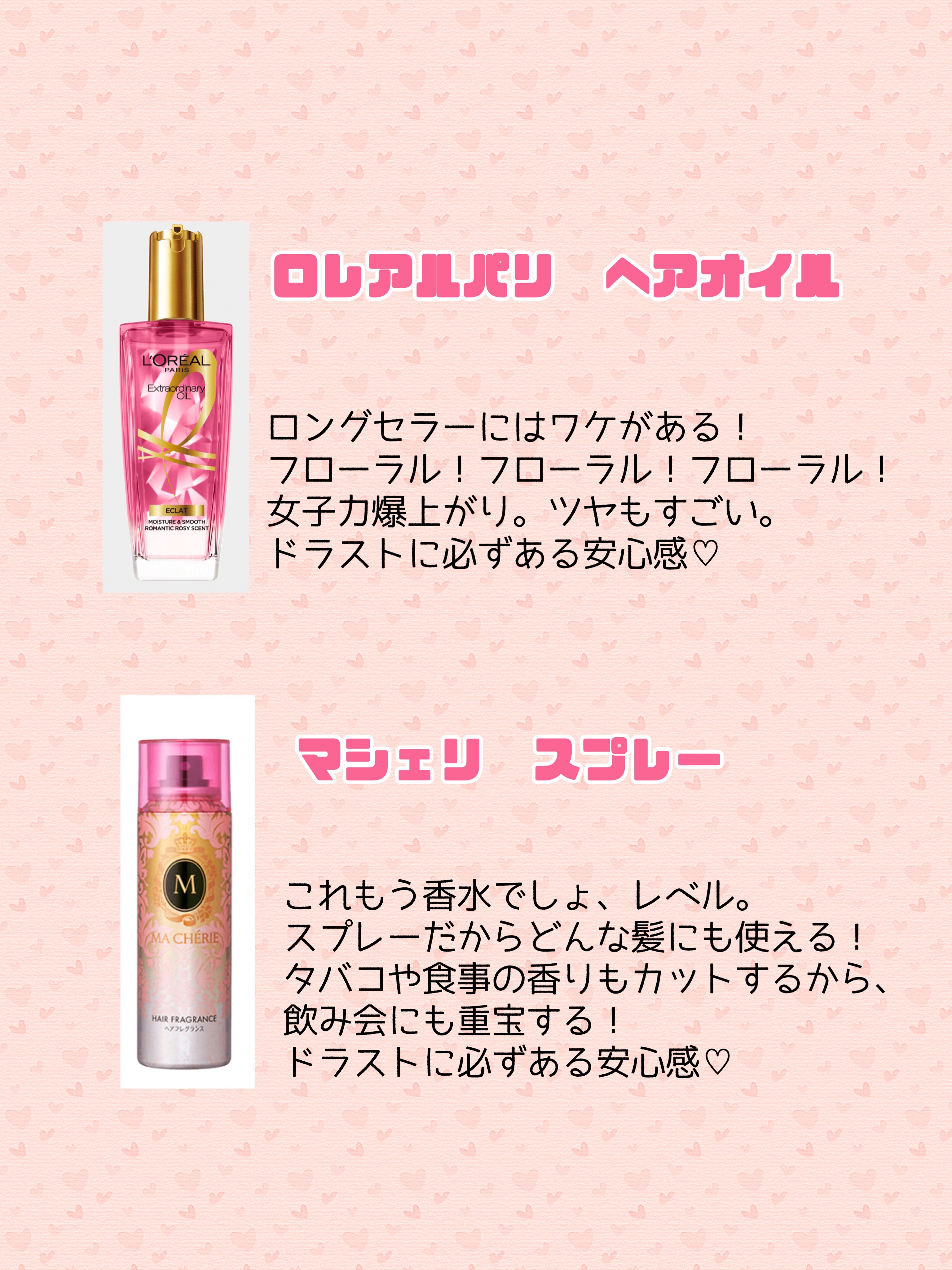 ロングヘアになってから「いい香り!何のシャンプー使ってるの?」って聞かれることが多いんだけど、実はほとんどスタイリング剤の香り😉甘くてうっとりなフローラル系【男子モテ】ウッディでオシャレ!【女子モテ】に分けてみたよー💕どれもうるうるでツヤツヤ...