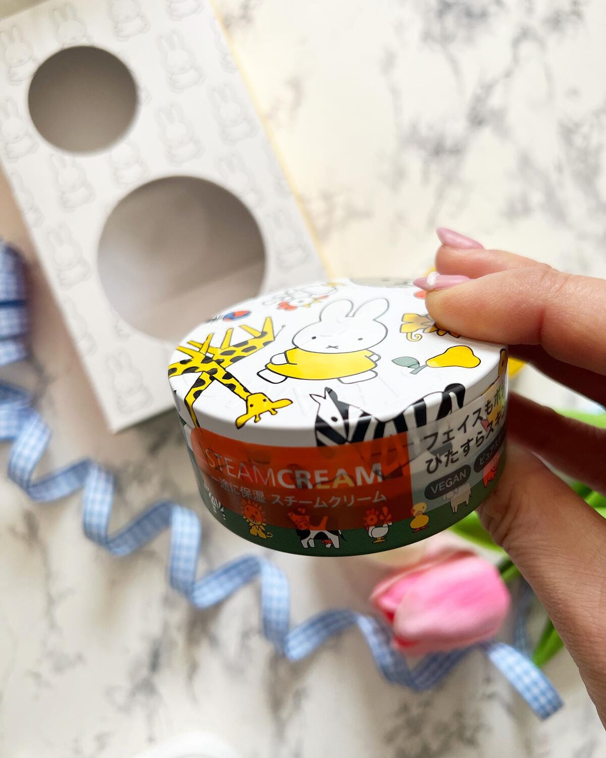 ミッフィーデザインのスチームクリームは他にも単品が何種類かあるんだけど、これは、ひときわカワイイBOX入りセット🥹 ヴィーガン処方で肌にも髪にも全身使える優しいふわふわクリームは何個あっても老若男女みんなが嬉しい✨ だからこれからの春とか、出会いと別れの季節じゃないですか?ちょっとした🎁ギフトにするのもメッチャおすすめかと👍✨